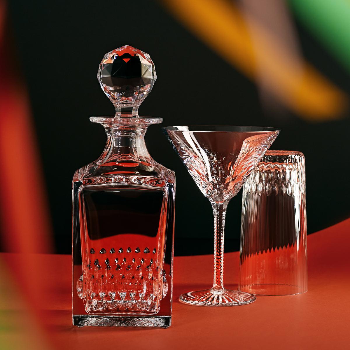 The artistic crystal glasses are real gems, which give every house bar a noble and elegant touch. When light falls on them, it is refracted in the crystal glass into a thousand mirror reflections.