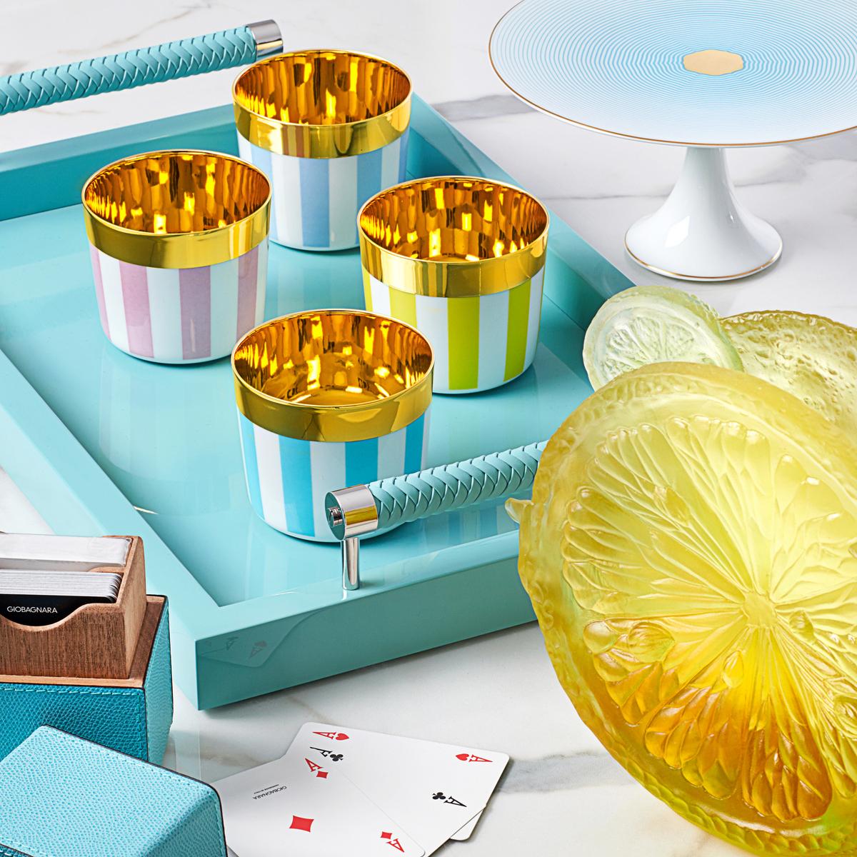 The "Cookies & Dreams" Champagne goblets are available in four fresh colours: Rose, Yellow, Blue and Turquoise.