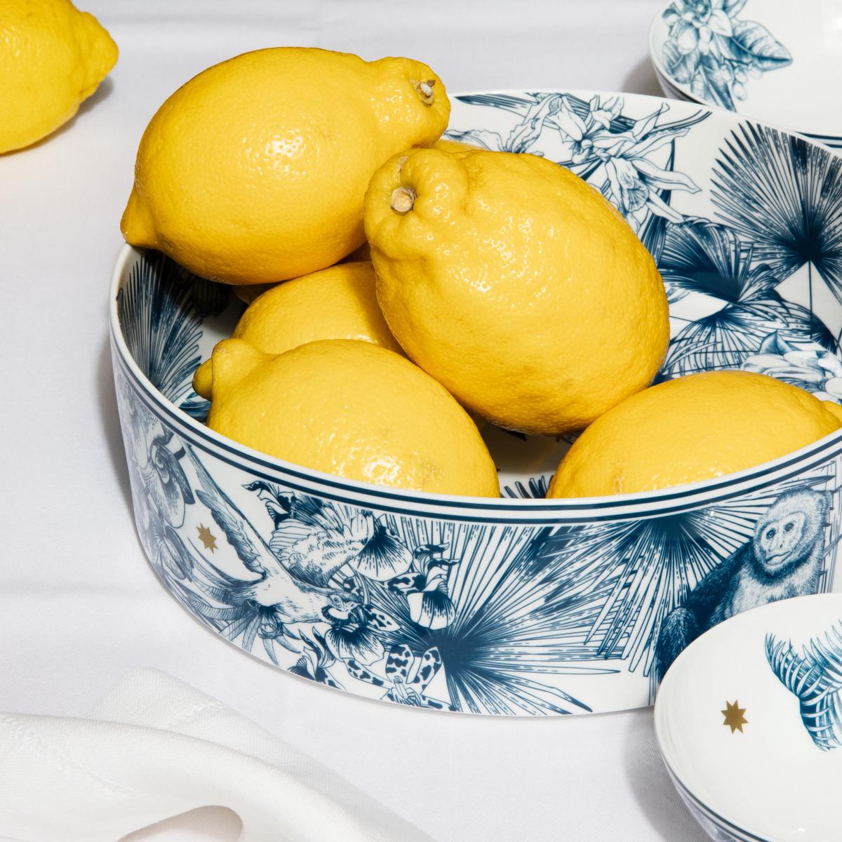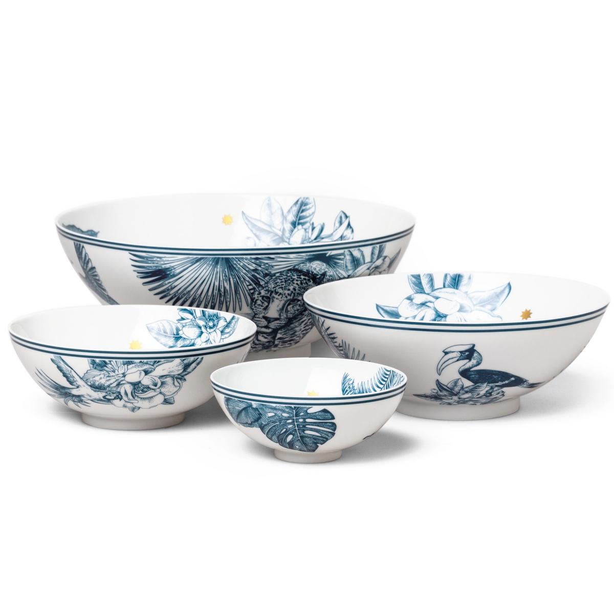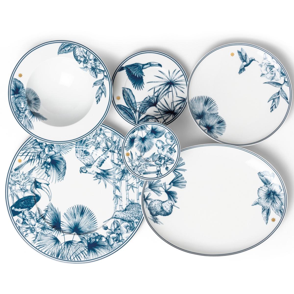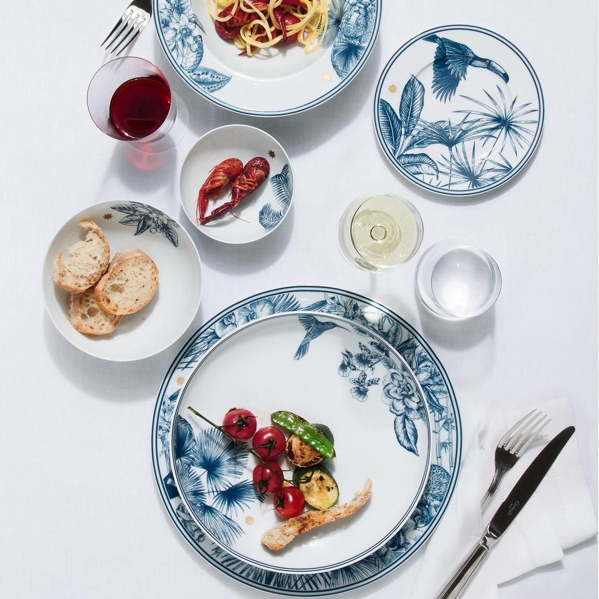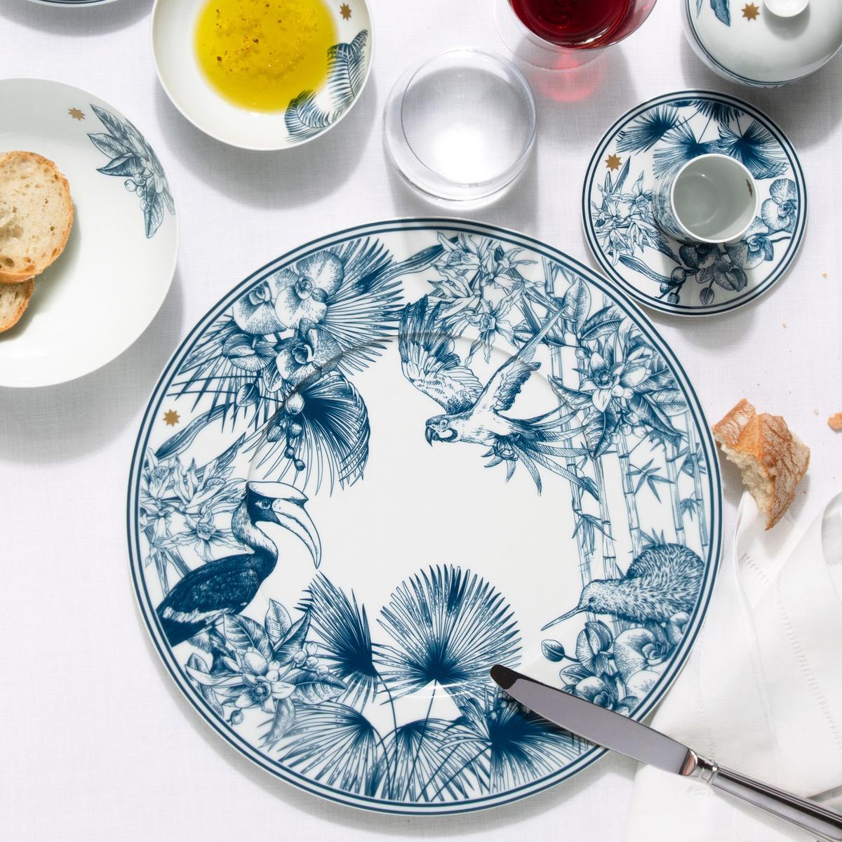 Paradise in blue. Discover the beauty of nature with the "Paraiso Blue" dinner service from Sieger by Fürstenberg. Designer Michael Sieger has brought together exotic natural drawings from all over the world for this dinner service, from tropical plants to wild animals such as leopards, parrots and toucans.