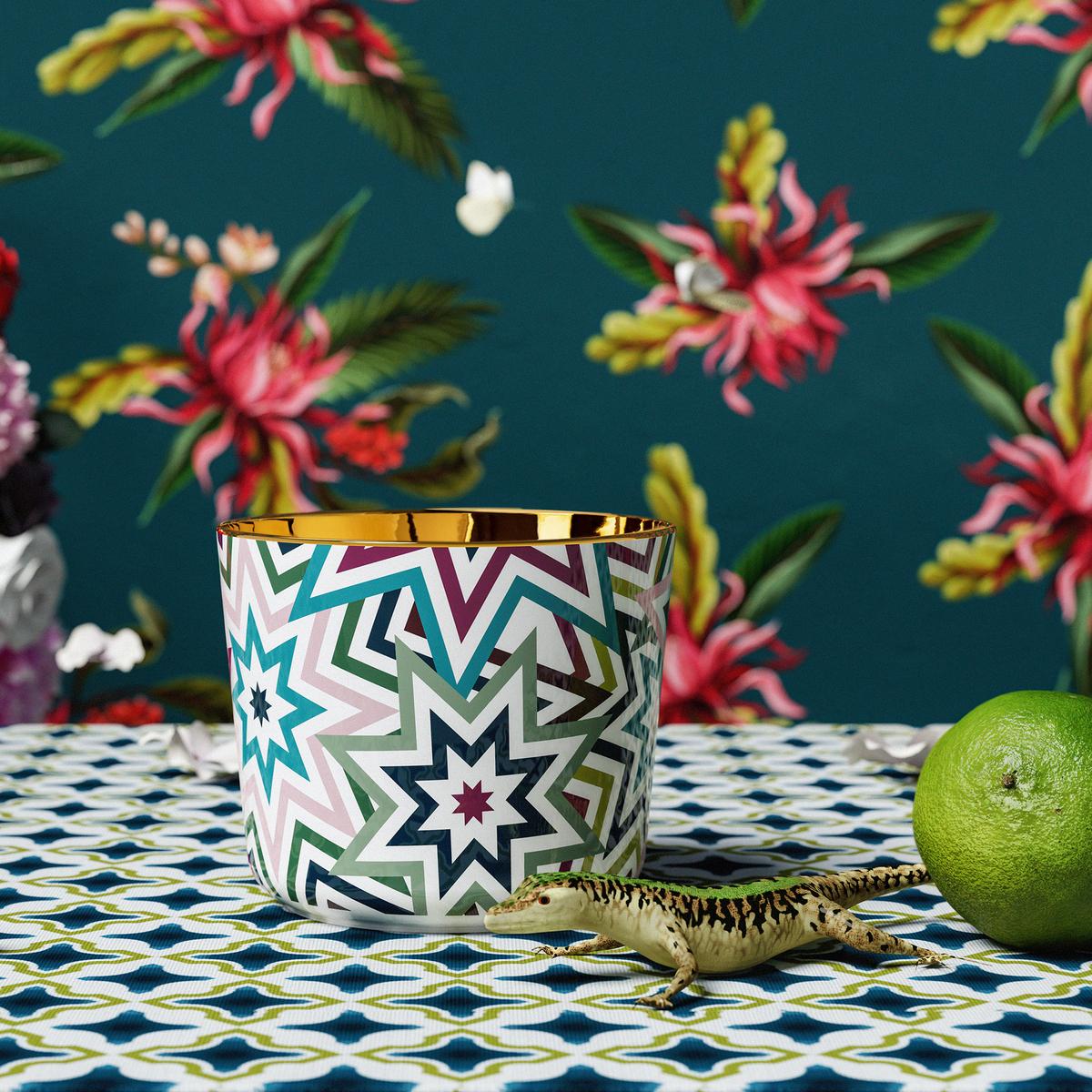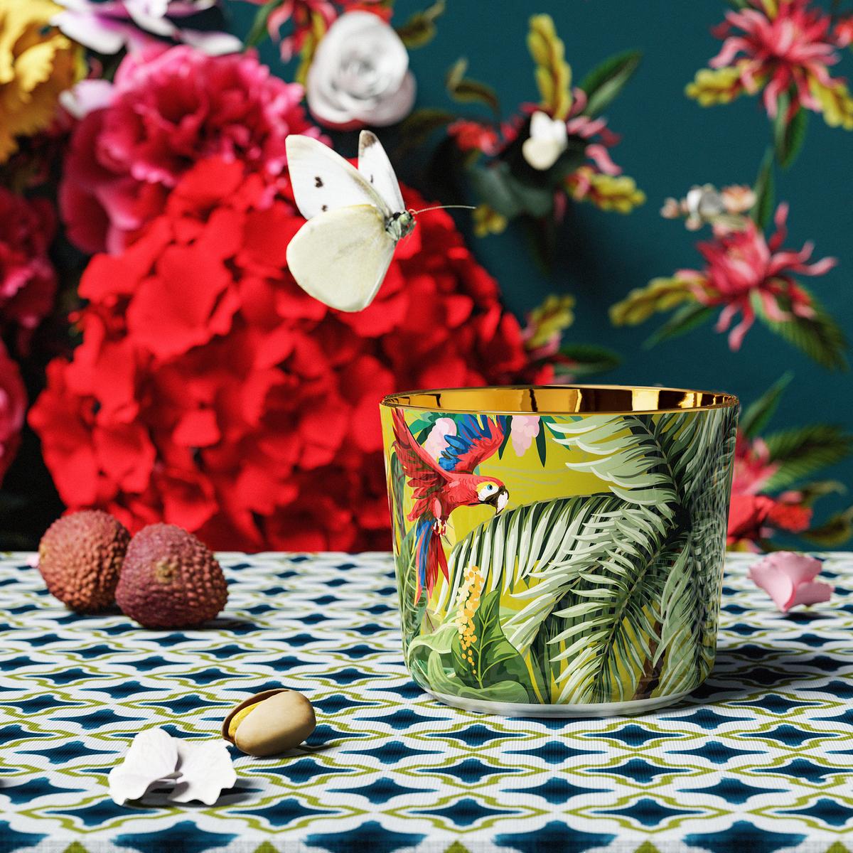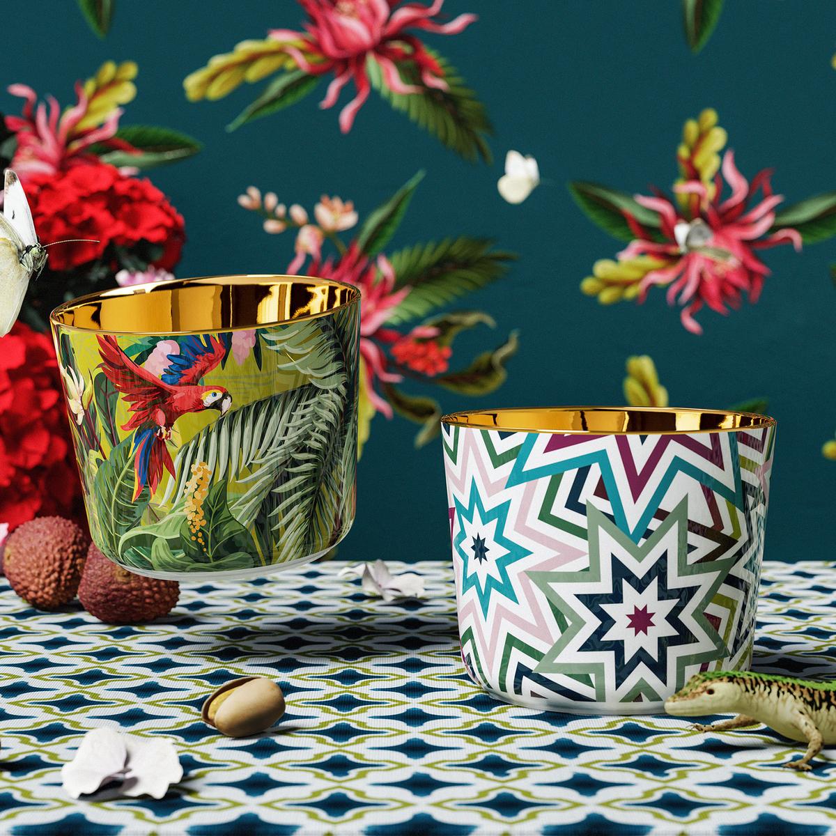 "Paraiso" from Sieger by Fürstenberg is like a journey to a place you long to visit – a homage to the beauty of the earth, the richness of nature and the diversity of cultures. The goblets brings all the world’s continents to the table. Tropical plants are paired with geometrical coloured stars.