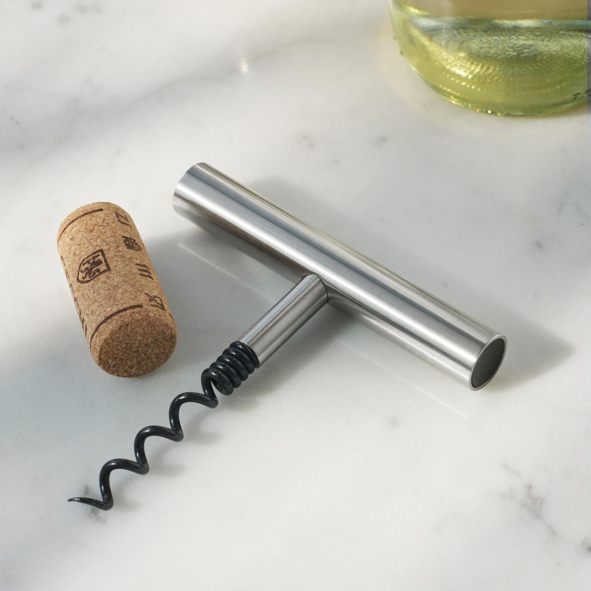 Crafted from durable stainless steel, the corkscrew impresses with its stability and minimalist aesthetic. Its effortless handling and enduring quality make it an essential tool for wine enthusiasts and design aficionados alike.