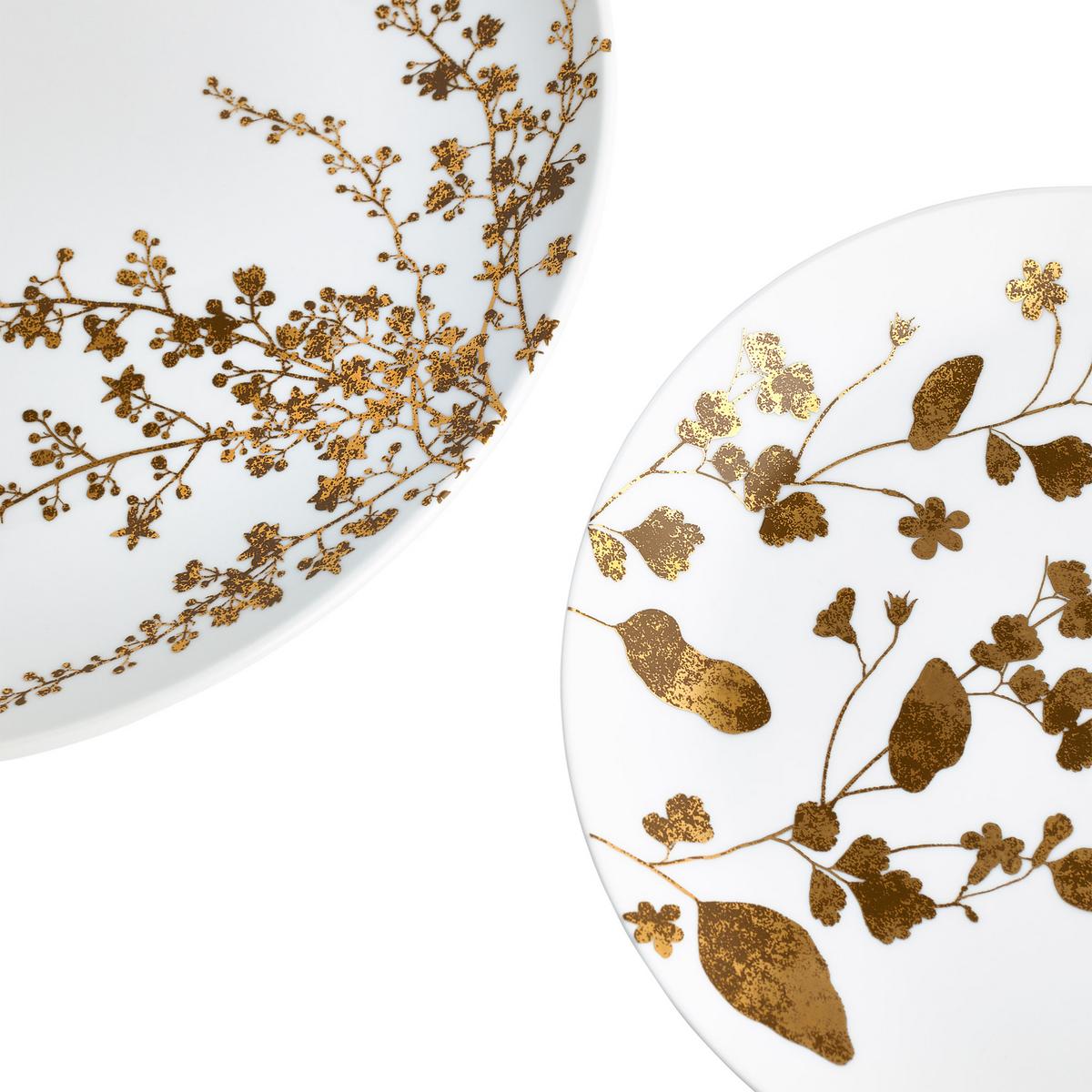 Designed by Vera Wang, the "Jardin" dinnerware from Wedgwood offers a luxe canvas for delicious dishes, featuring shimmering gold and bronze floral accents on a clean white Fine Bone china backdrop. All single pieces work perfectly together for hosting dinners for family and friends, all inspired by Vera Wang's love for art and her personal botanical illustrations. Complete the set or mix and match with other Wedgwood collections for a unique look.