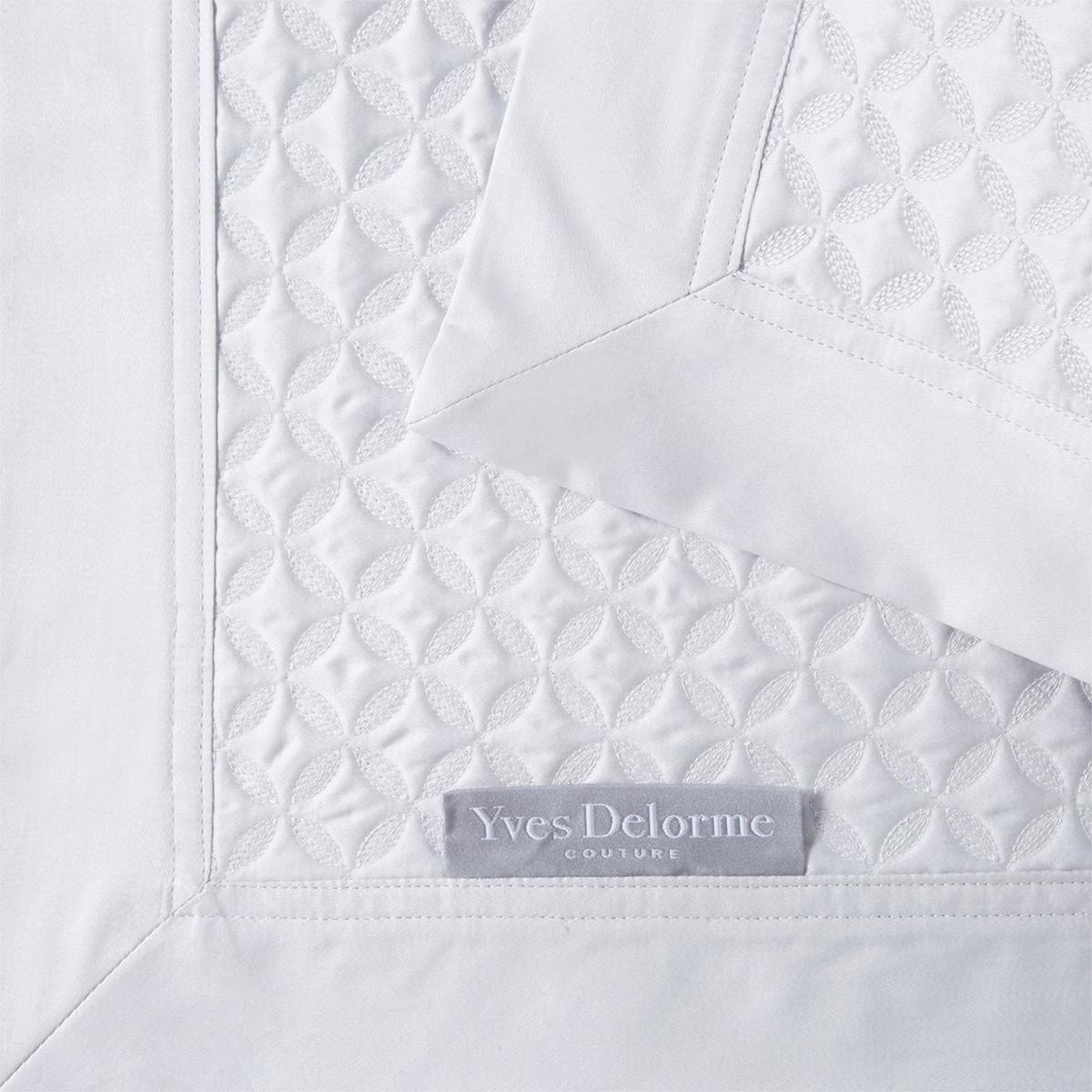 The "Adagio" bedspread by Yves Delorme Couture embodies understated elegance and the refinement of fine craftsmanship. Made in France from luxurious Pima cotton sateen (200 threads/cm²) with a subtle sheen, it enchants with its quilted texture that combines lightness with enveloping warmth. Delicate embroidery and the smooth, silky feel highlight its decorative character.
