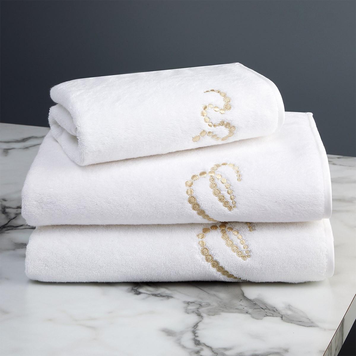 The "Ballet" terry towels by Yves Delorme Couture bring French craftsmanship to life through an inspired story: golden embroidery tracing the dance steps once drawn for the Sun King. These delicate embellishments evoke the rhythm of a royal ballet, adding a touch of opulence to any bathroom.