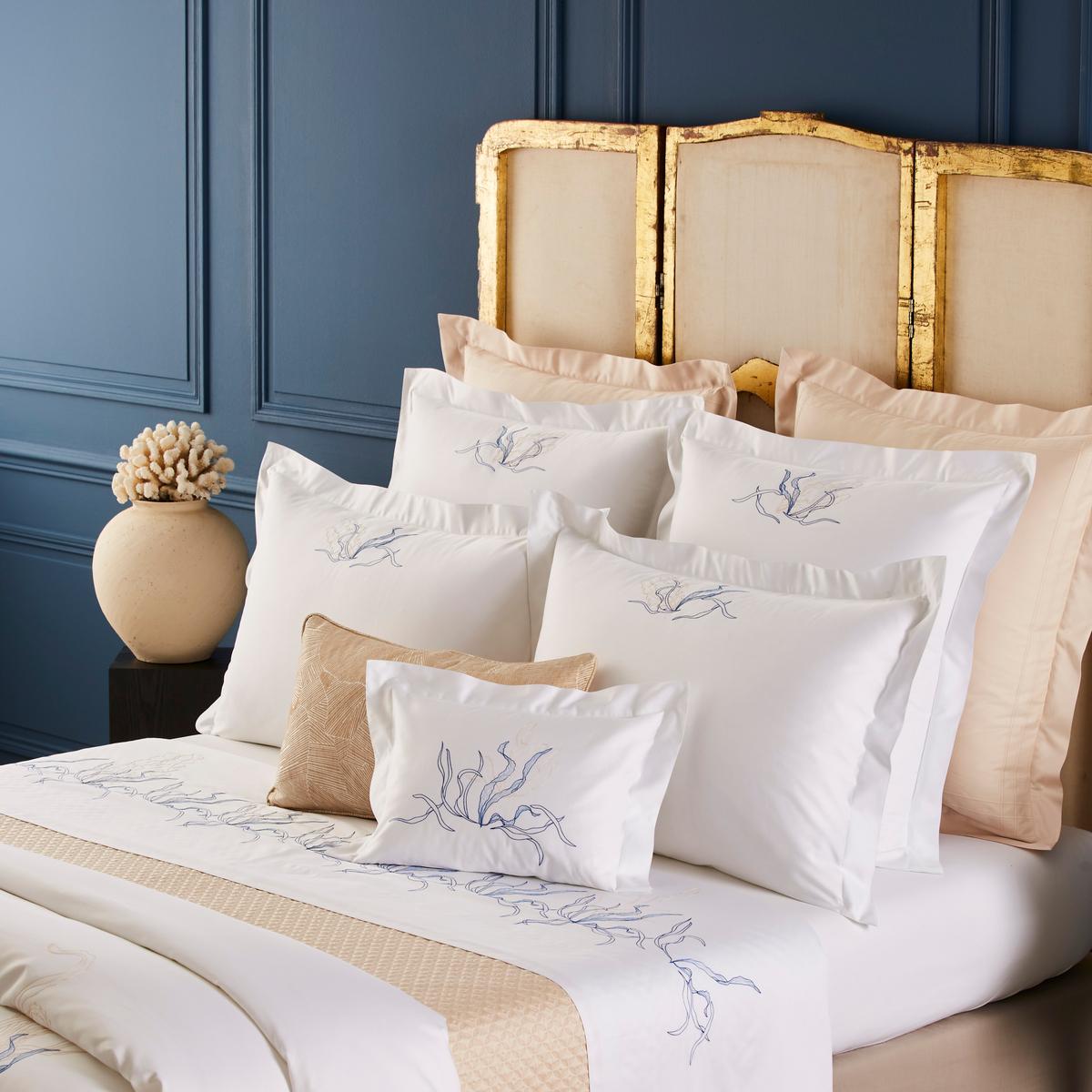 The "Nautilus" bed linen by Yves Delorme Couture invites you on an extraordinary voyage, inspired by the legendary submarine from Twenty Thousand Leagues Under the Sea. Delicate embroidery, crafted with finesse and elegance, depicts enchanting underwater worlds on the finest Pima cotton sateen.