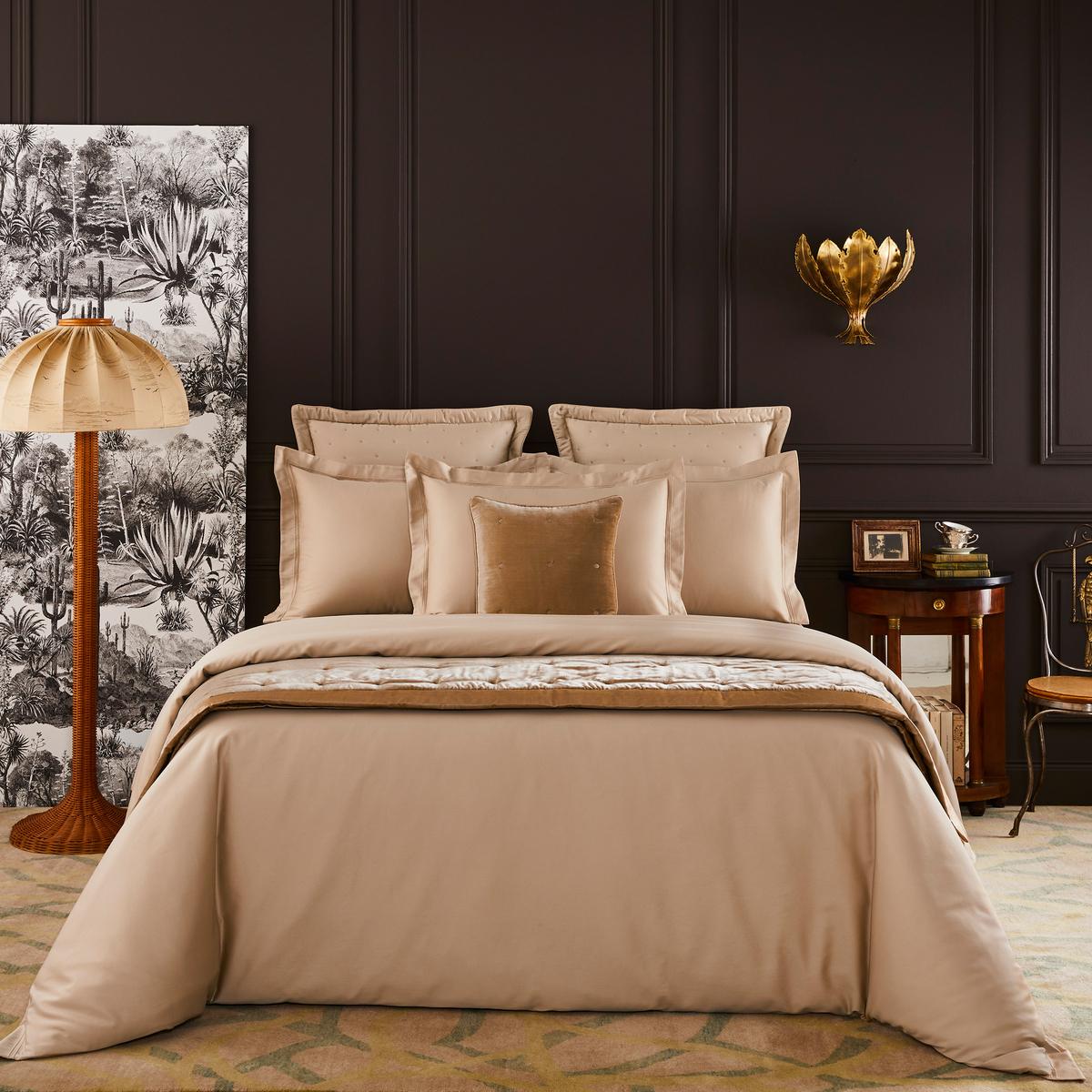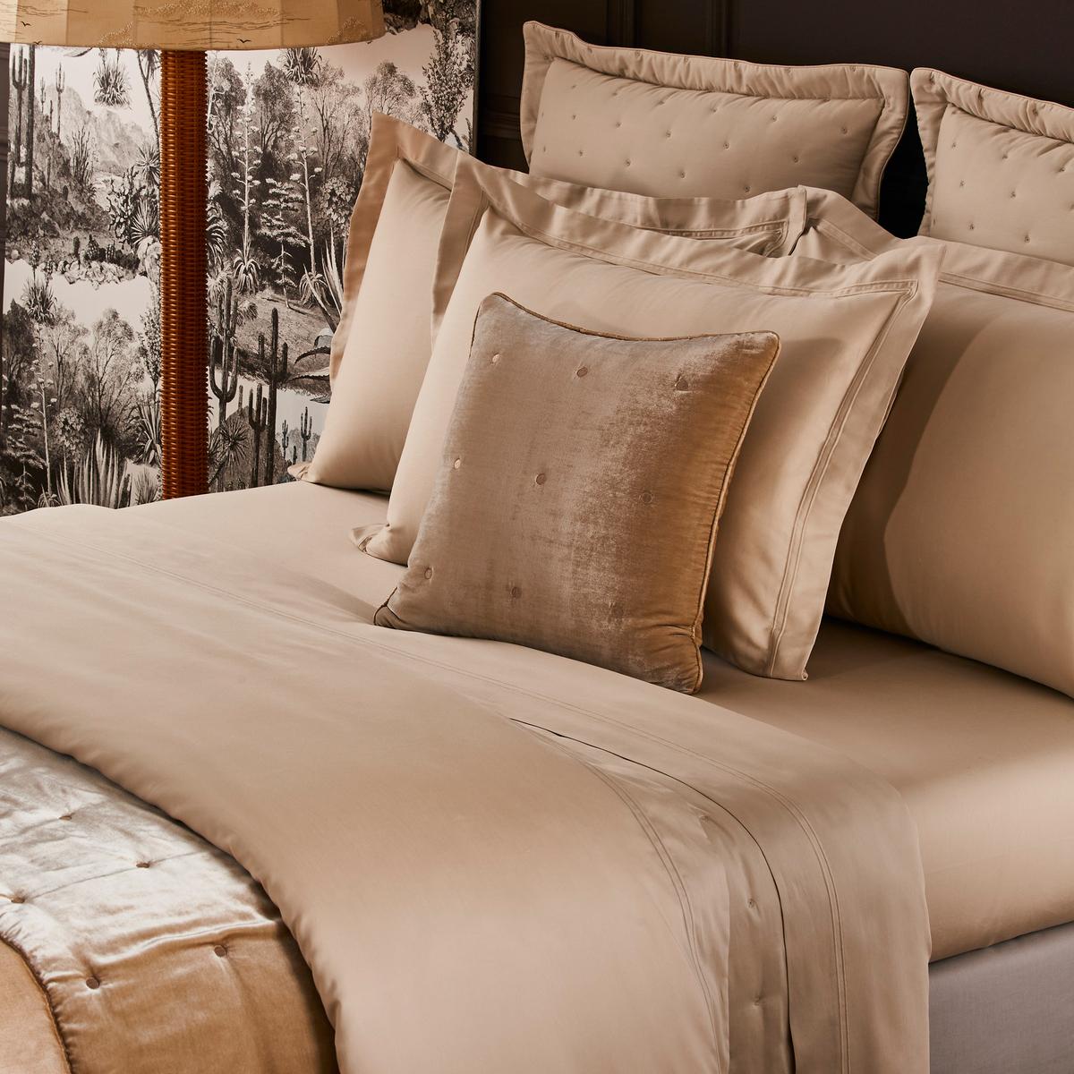 Yves Delorme’s "Triomphe" bed linen is an elegant, plain-coloured line. The Yves Delorme "Triomphe" bed linen in the colour "dune" has an attractive double saddle stitch and wide flange that adorn both the pillow cases and the sheets and duvet covers.