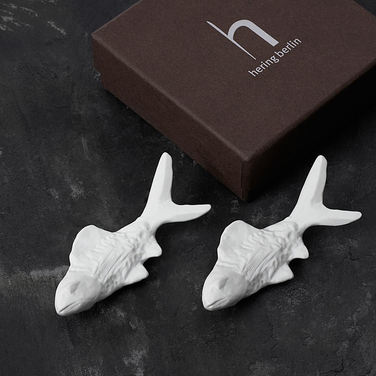 The little herrings are made of bisque porcelain and are produced entirely by hand in Germany. The set of 2 "Herrings" knife rests is supplied carefully packed in a beautiful Hering Berlin giftbox. These "Herrings" knife rests go particularly well together with the "Ocean" Service from Hering Berlin. But, naturally, the knife rests can also be perfectly combined with further Hering Berlin dinnerware.