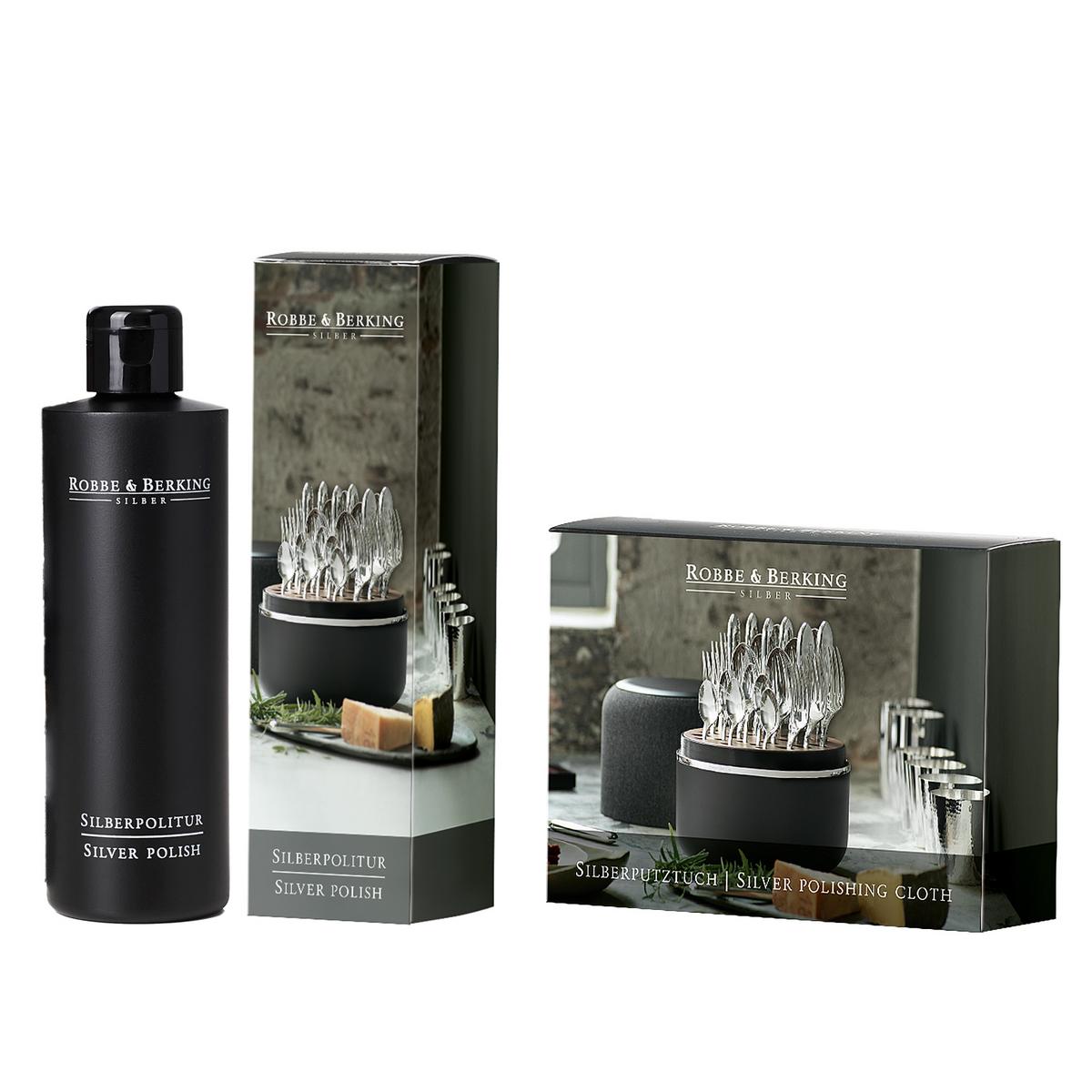 With the silvercare range from Robbe & Berking you will be able to draw endless pleasure from you silver cutlery. The silvercare set offers everything you need to look after silverplated or Sterling silver cutlery and to maintain its original polished appearance: a silver polishing cloth, silver polish and silver foam.