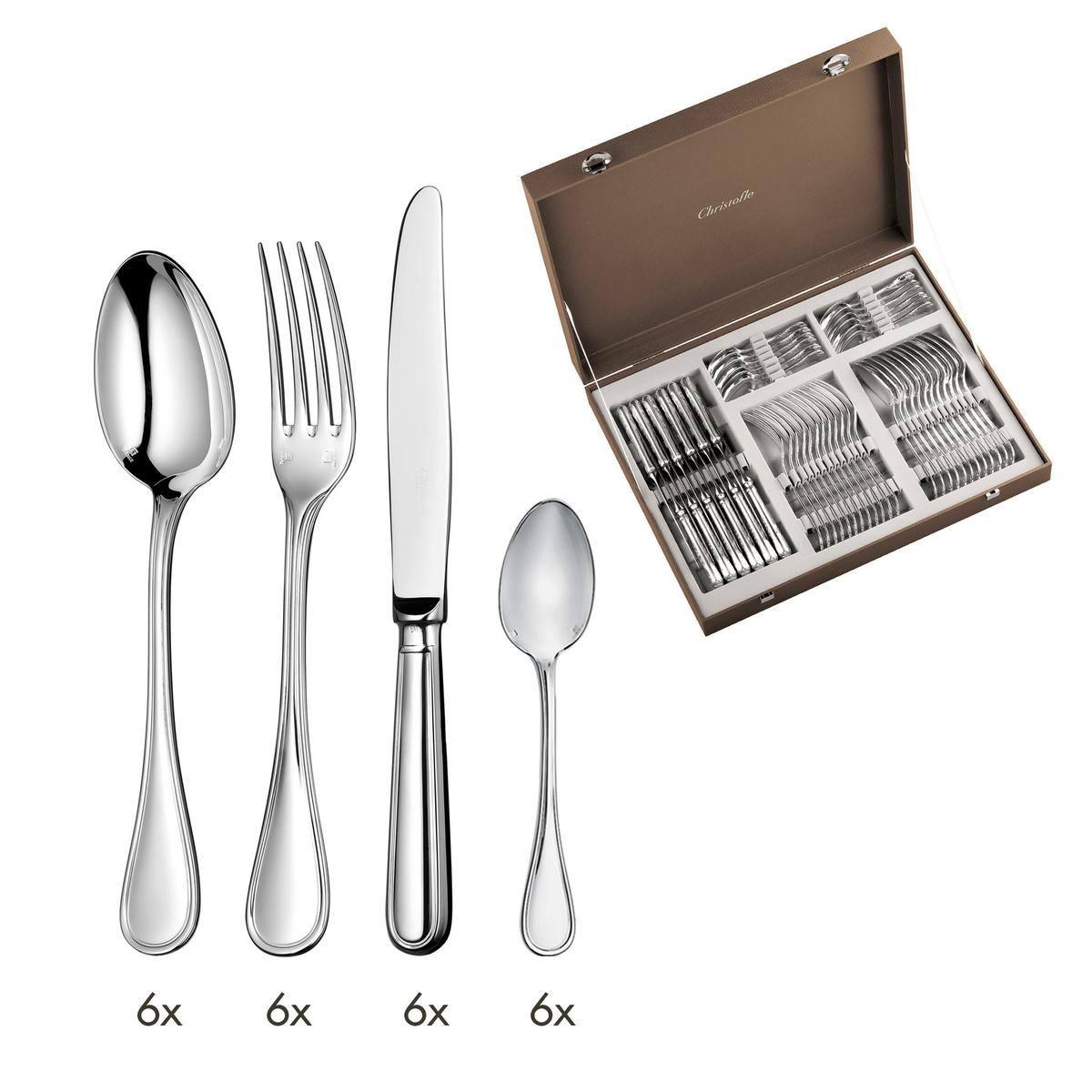 "Albi" 48-piece cutlery silverplated set in a case: 12 x dinner spoons, dinner forks, dinner knives and coffee spoons by Christofle