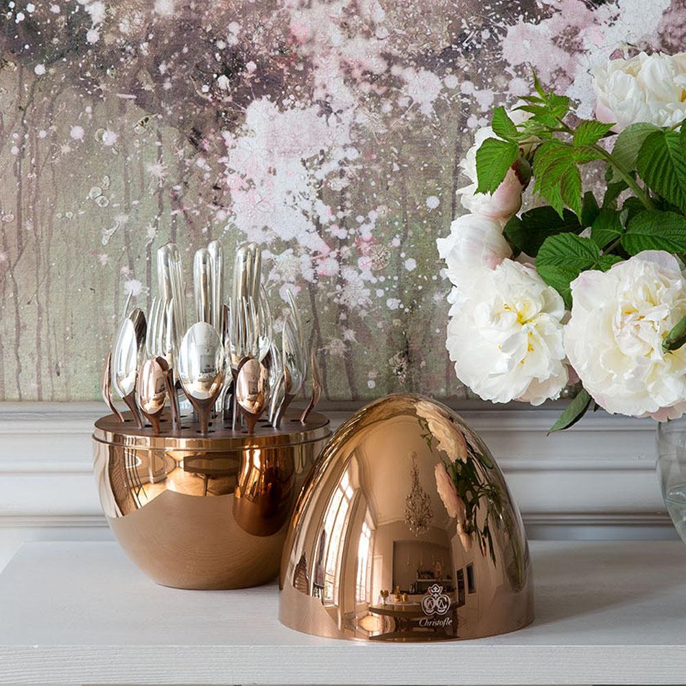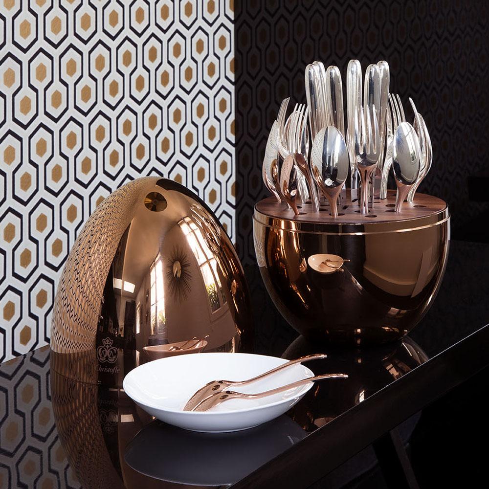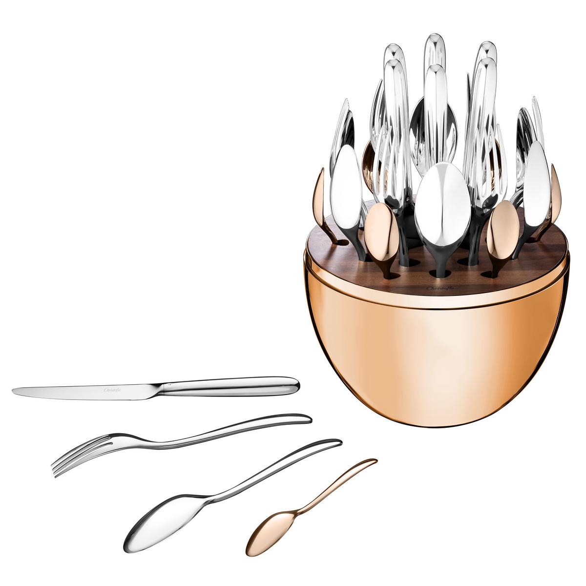 "Mood Precious" 24-piece silverplated cutlery set in copper-coloured egg case by Christofle