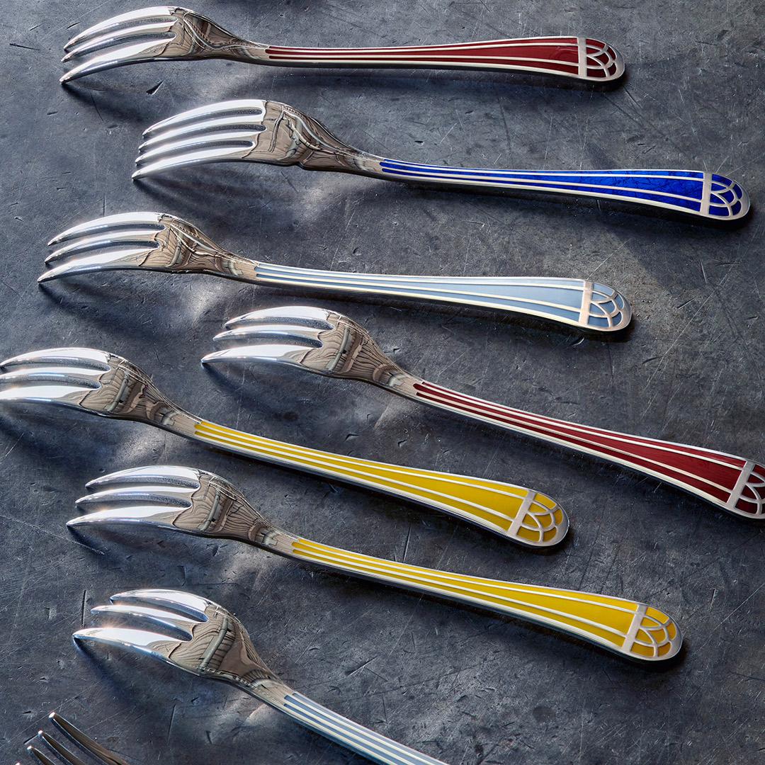 It is the art of "Cloisonné" that makes the "Talisman" cutlery from Christofle so elegant. This ancient technique brings together silver with lacquer, resulting in a particularly elegant form of tableware.