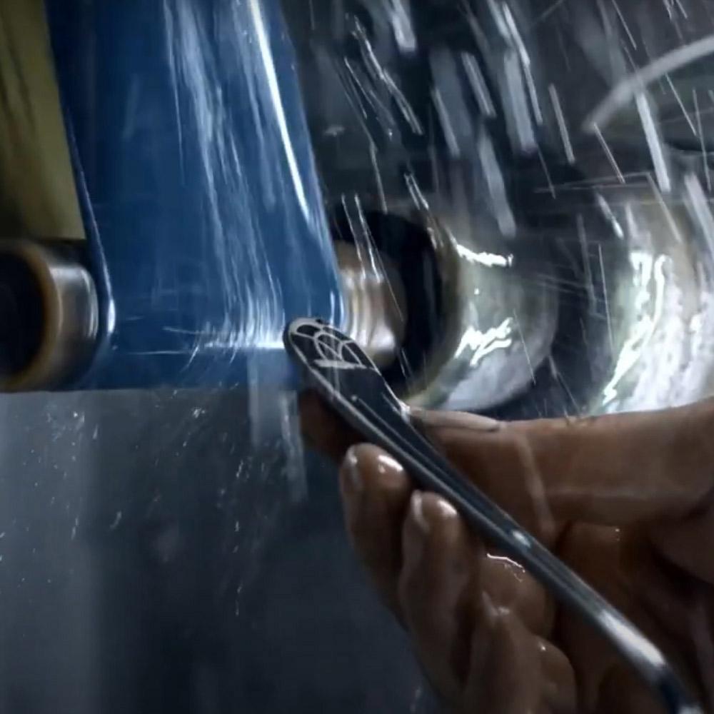 This initially entails soldering decorative silver stripes onto the bare metal of the cutlery. The Chinese lacquer is then embedded in the compartments in-between. During the firing afterwards the lacquer sinks down, so that the cells have to be refilled on a number of occasions. This procedure is repeated up to sixteen times.