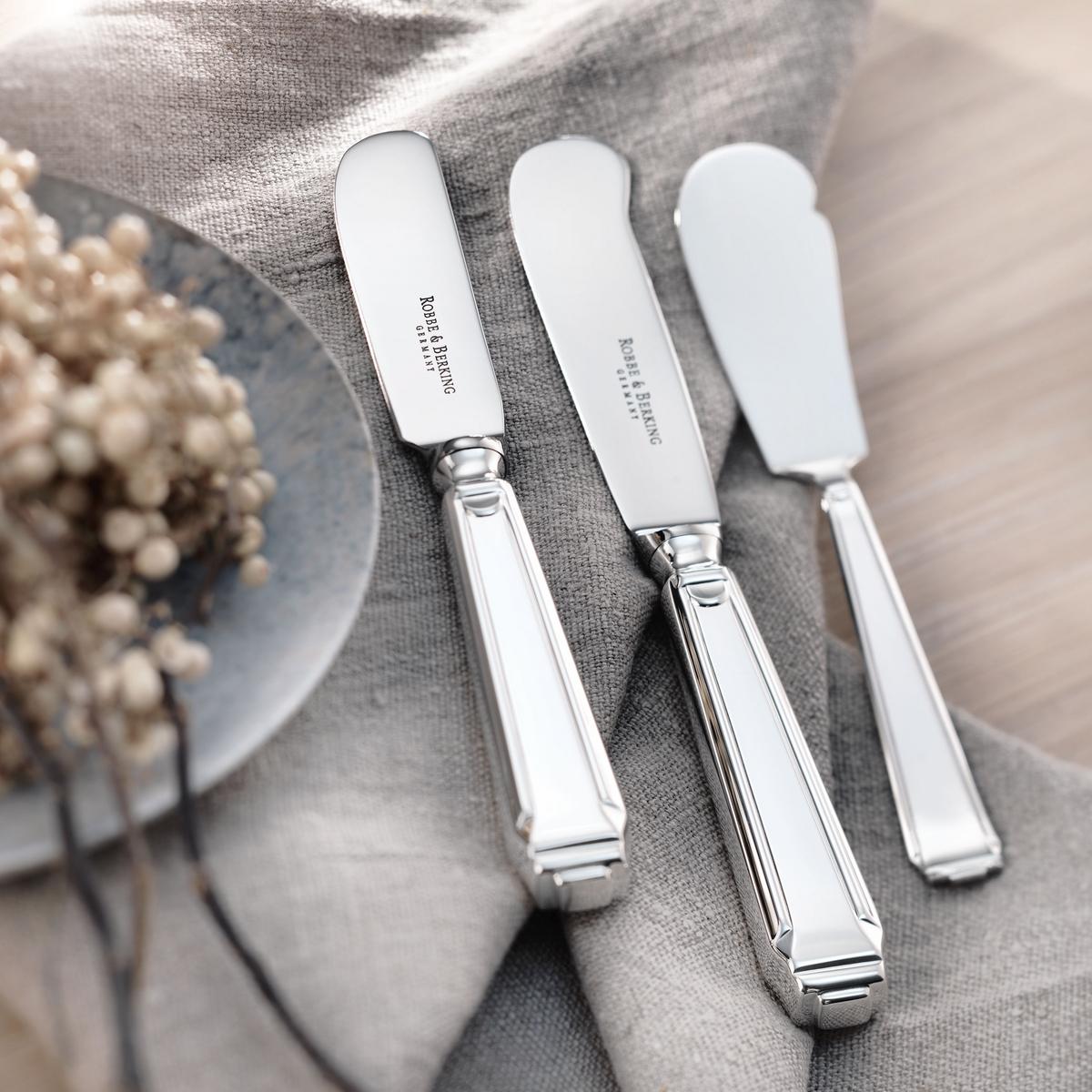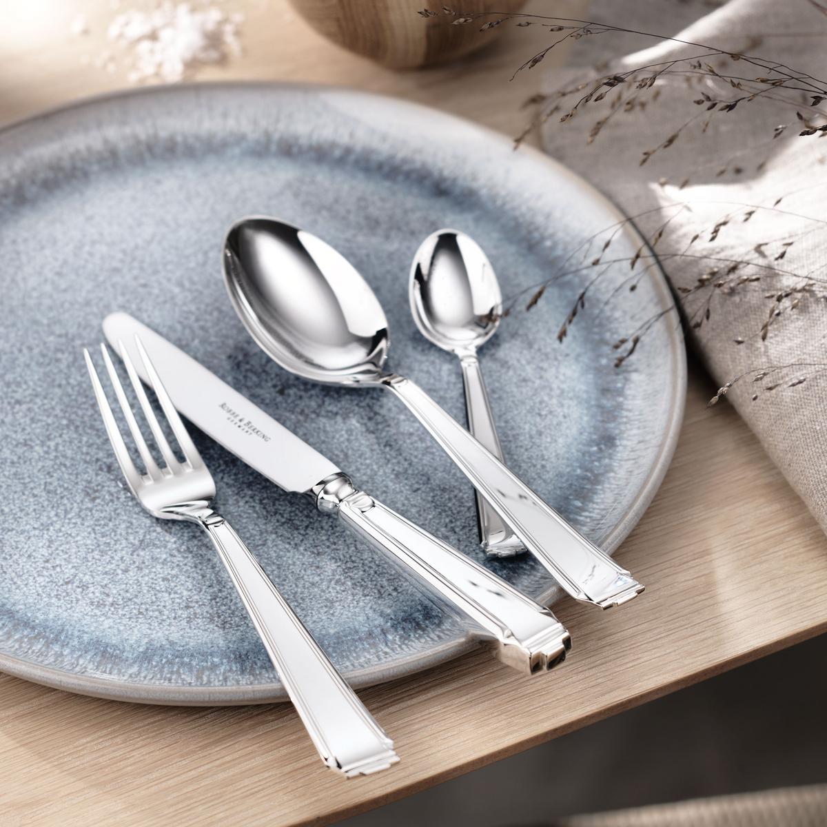 Glamorous comeback: Theodor Berking, the silversmith and third-generation owner of the family firm, designed "Art Deco" in 1929. It is a cutlery line of classic beauty which still adorns dining tables to this day, and it is a prime example of the timeless quality of stylish masterpieces. Silverplated cutlery by Robbe & Berking is manufactured using 150g silver. This robust silver plate is particularly resistant and is completely dishwashable.