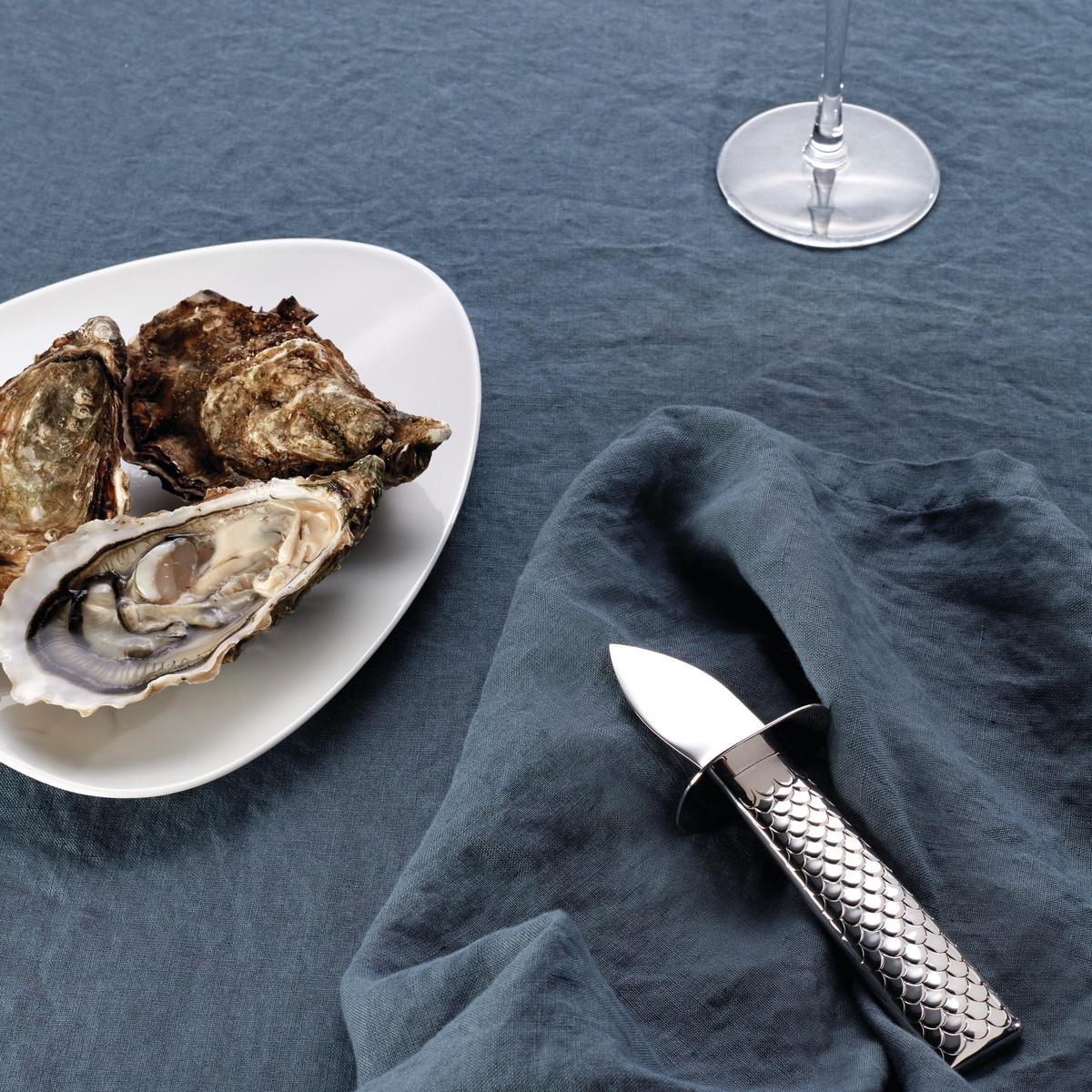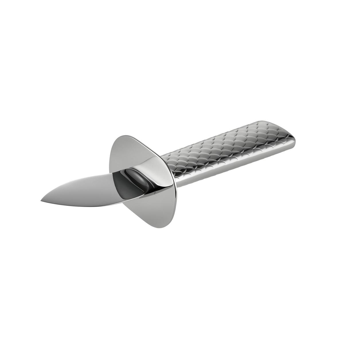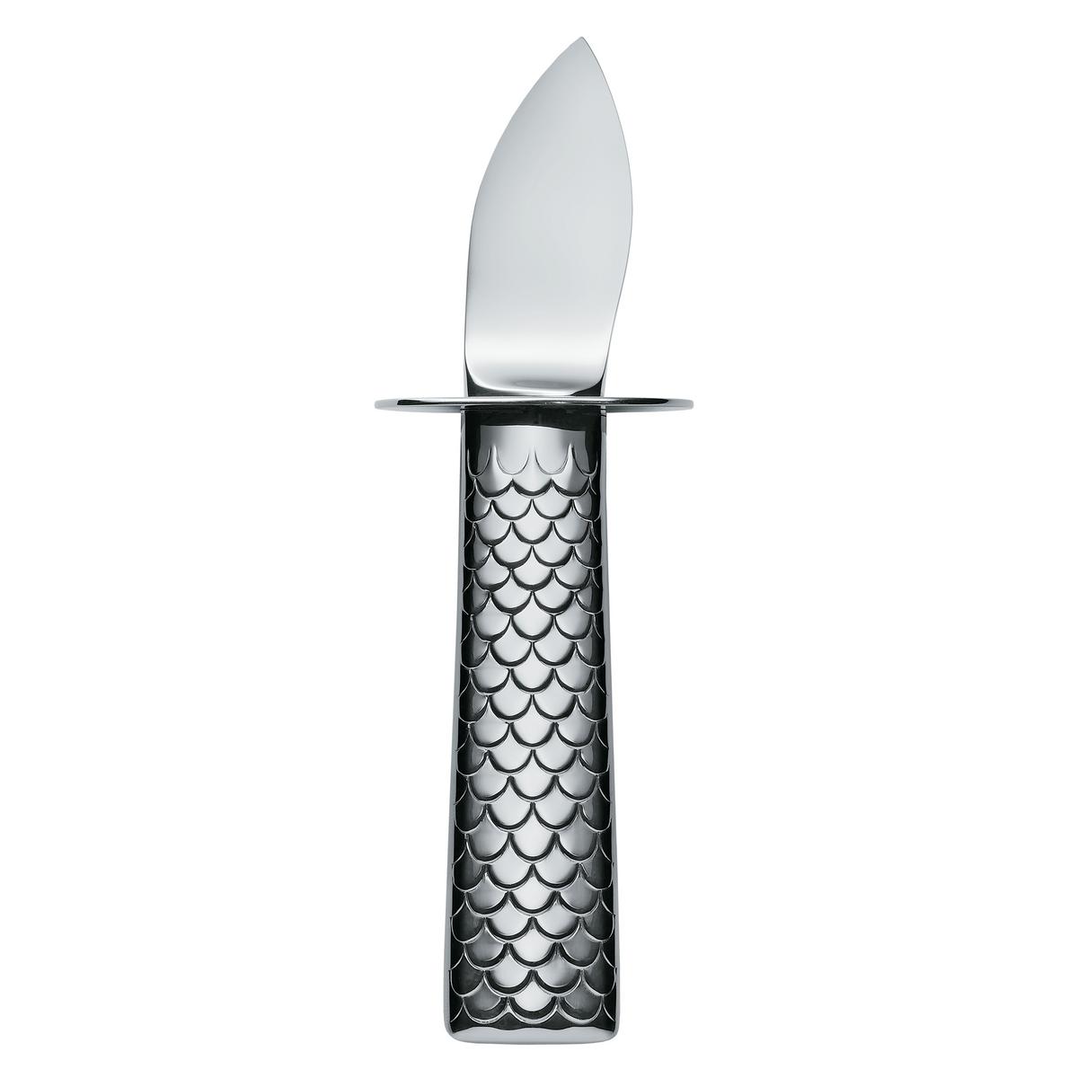 The "Colombina Fish" oyster knife was designed for Alessi by the world-famous couple Doriana and Massimiliano Fuksas. Their oyster knife is the perfect implement to enable you to enjoy the seafood delicacies. The surface structure of the handle resembles fish scales and is made of mirror-polished, stainless steel. The blade of the "Colombina Fish" knife is of pure steel.