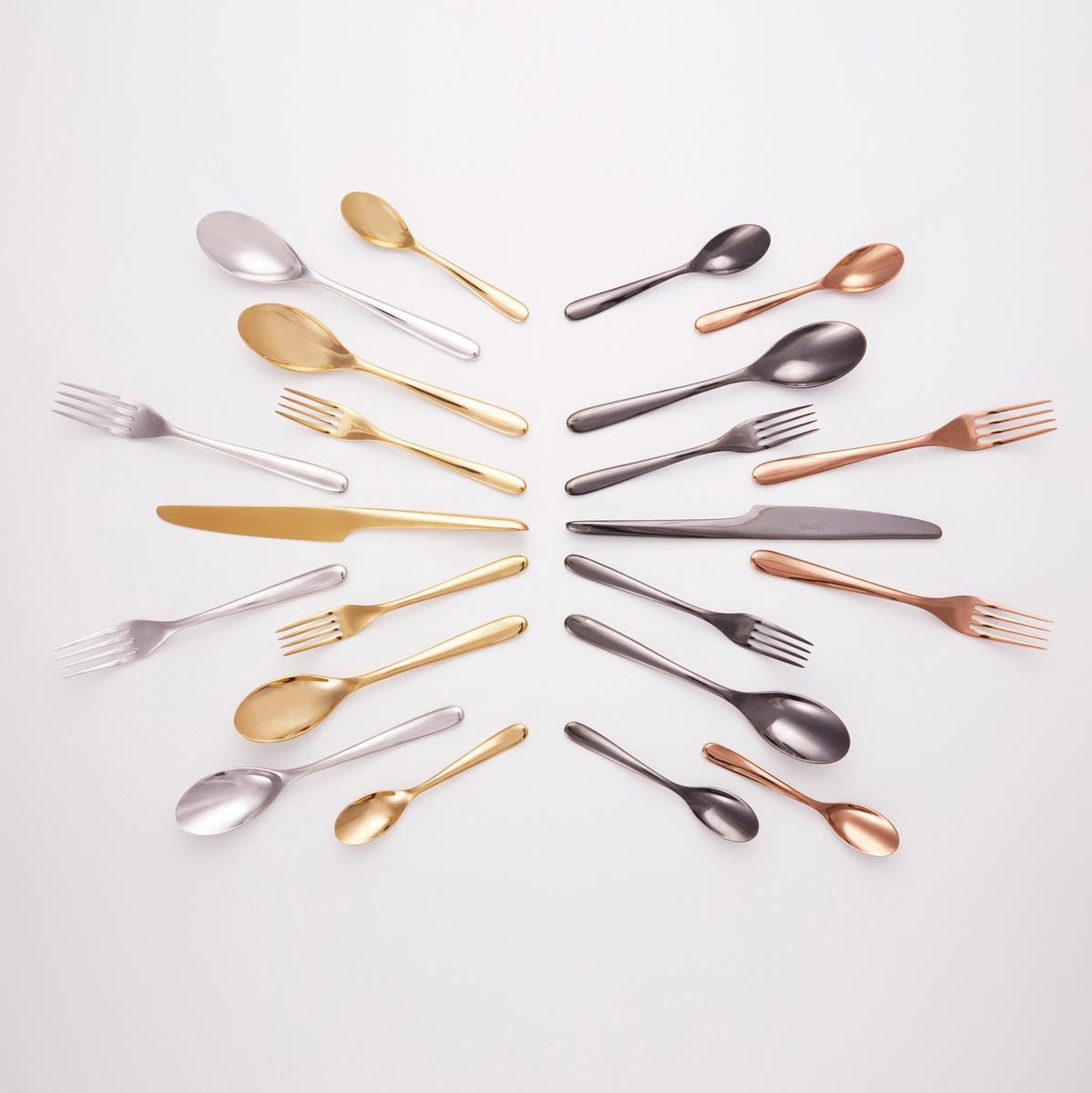 Almost ten years after the launch of the iconic "L’âme de Christofle" collection, Christofle is inviting us on a colorful journey with three new colours: gold, copper and black. These new colours have a polished-shiny finish, as the original "L’âme de Christofle" stainless steel flatware line. The respective colour is achieved by applying a coloured metal alloy to the surface - a so-called PVD coating. This process enhances the pure lines of the flatware and adds a dash of modernity to the finest tables.