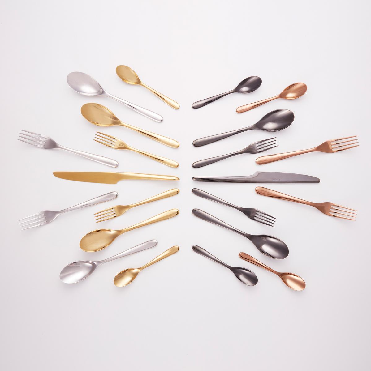 Almost ten years after the launch of the iconic "L’âme de Christofle" collection, Christofle is inviting us on a colorful journey with three new colours: gold, copper and black. These new colours have a polished-shiny finish, as the original "L’âme de Christofle" stainless steel flatware line. The respective colour is achieved by applying a coloured metal alloy to the surface - a so-called PVD coating. This process enhances the pure lines of the flatware and adds a dash of modernity to the finest tables.