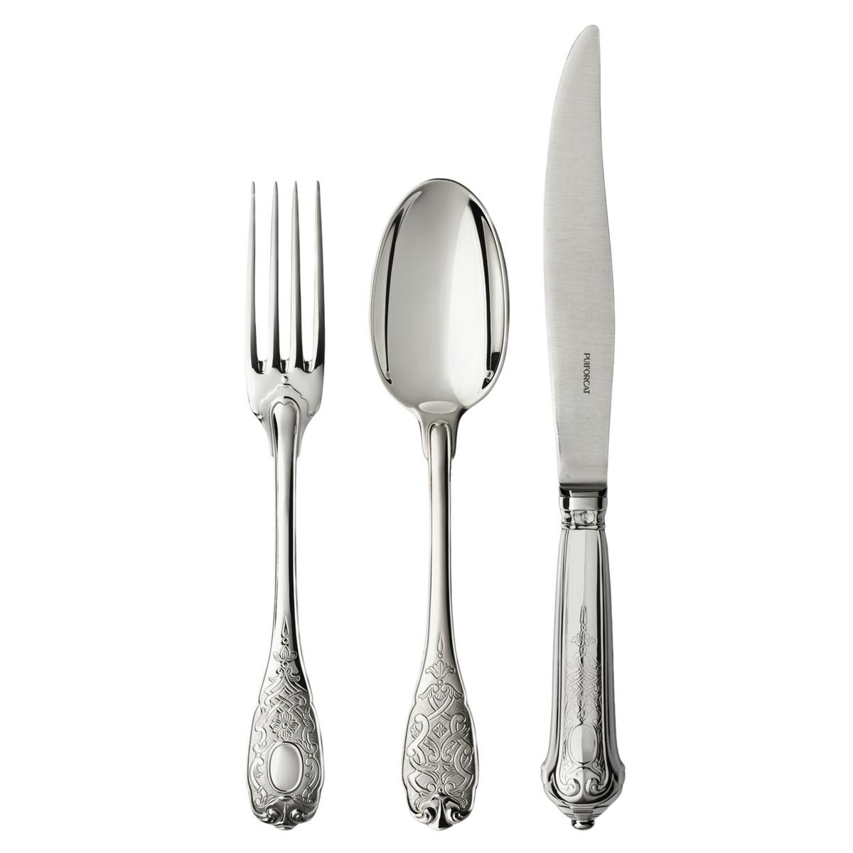 The high-quality of Puiforcat cutlery is also revealed in the high percentage of 930/1000 sterling silver. The soup spoon alone contains 103 grams of silver.