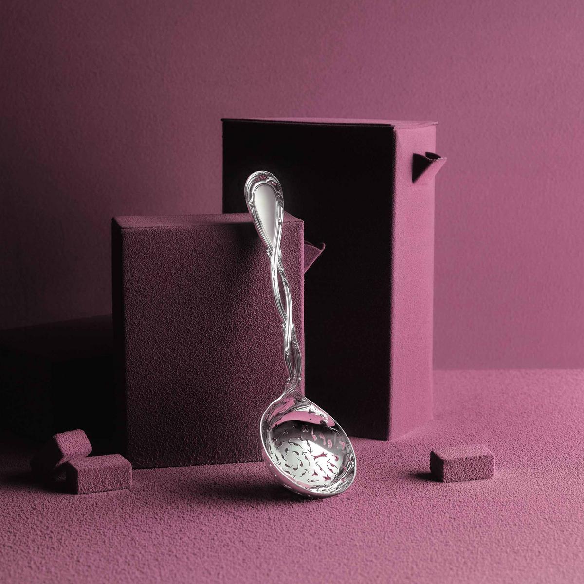 The Puiforcat model with its curved handles decorated with ornate floral patterns was designed by Nicolas Cornu in 1775 and was the favourite cutlery of Louis XV and Madame de Pompadour.