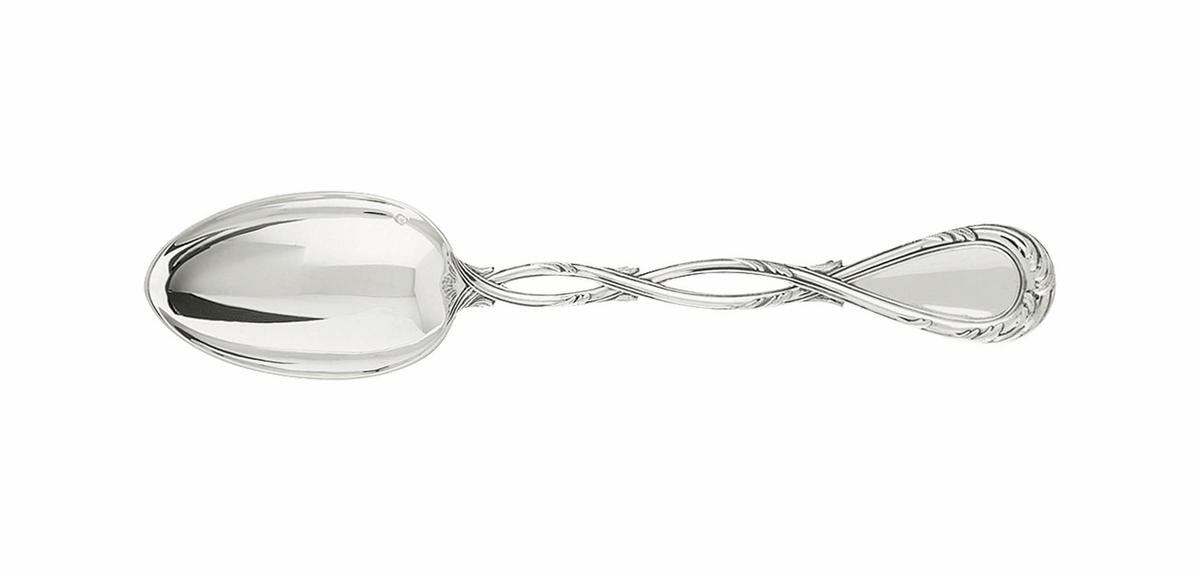 The Puiforcat model with its curved handles decorated with ornate floral patterns was designed by Nicolas Cornu in 1775 and was the favourite cutlery of Louis XV and Madame de Pompadour.