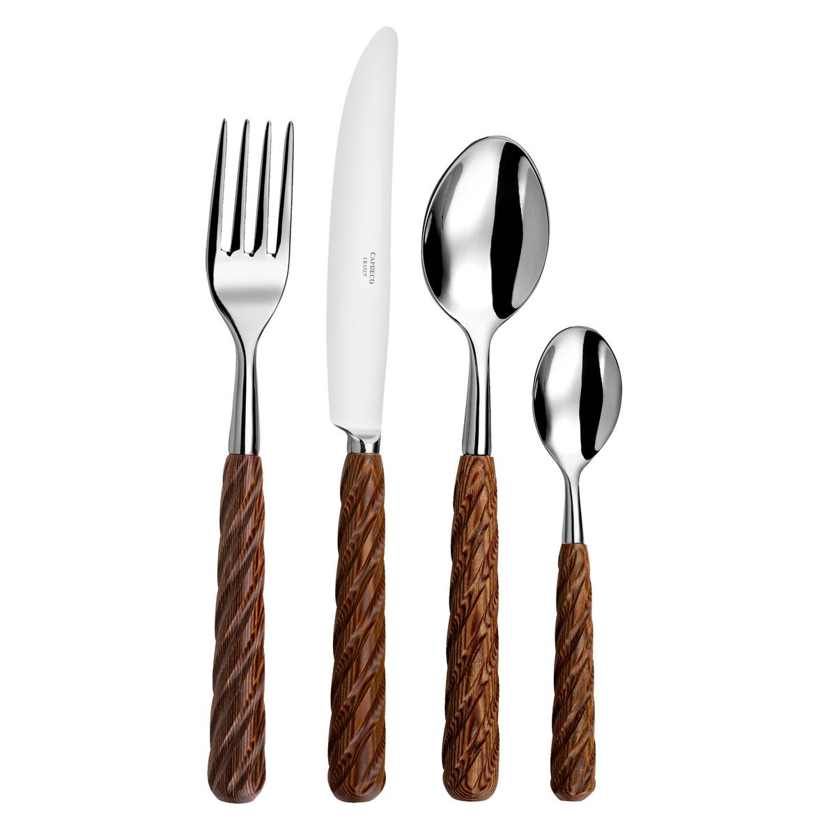 You don’t see cutlery with wooden handles that often and the "Ellipse" cutlery is particularly unique because the handles are "elliptically" twirled. This pattern is worked into the wood to create a relief-like surface structure. The combination of shiny stainless steel and wood makes the "Ellipse" cutlery very eye-catching. What is more, its curved surface makes the cutlery very pleasant to hold. The different grain in the wood gives each piece its own individual character.