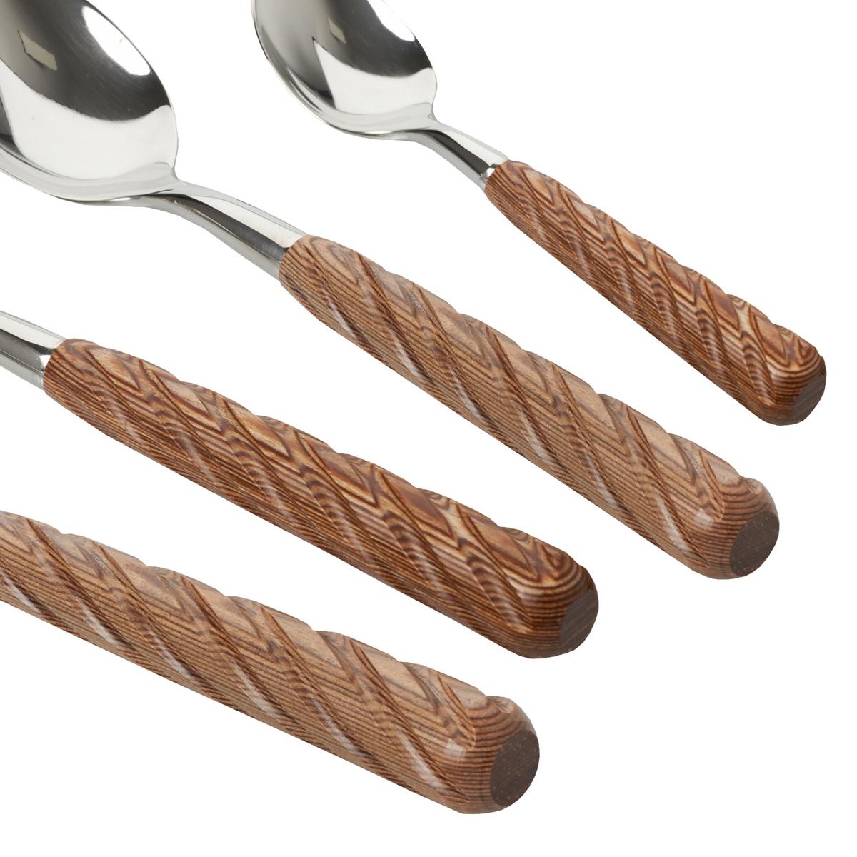 You don’t see cutlery with wooden handles that often and the "Ellipse" cutlery is particularly unique because the handles are "elliptically" twirled. This pattern is worked into the wood to create a relief-like surface structure. The combination of shiny stainless steel and wood makes the "Ellipse" cutlery very eye-catching. What is more, its curved surface makes the cutlery very pleasant to hold. The different grain in the wood gives each piece its own individual character.