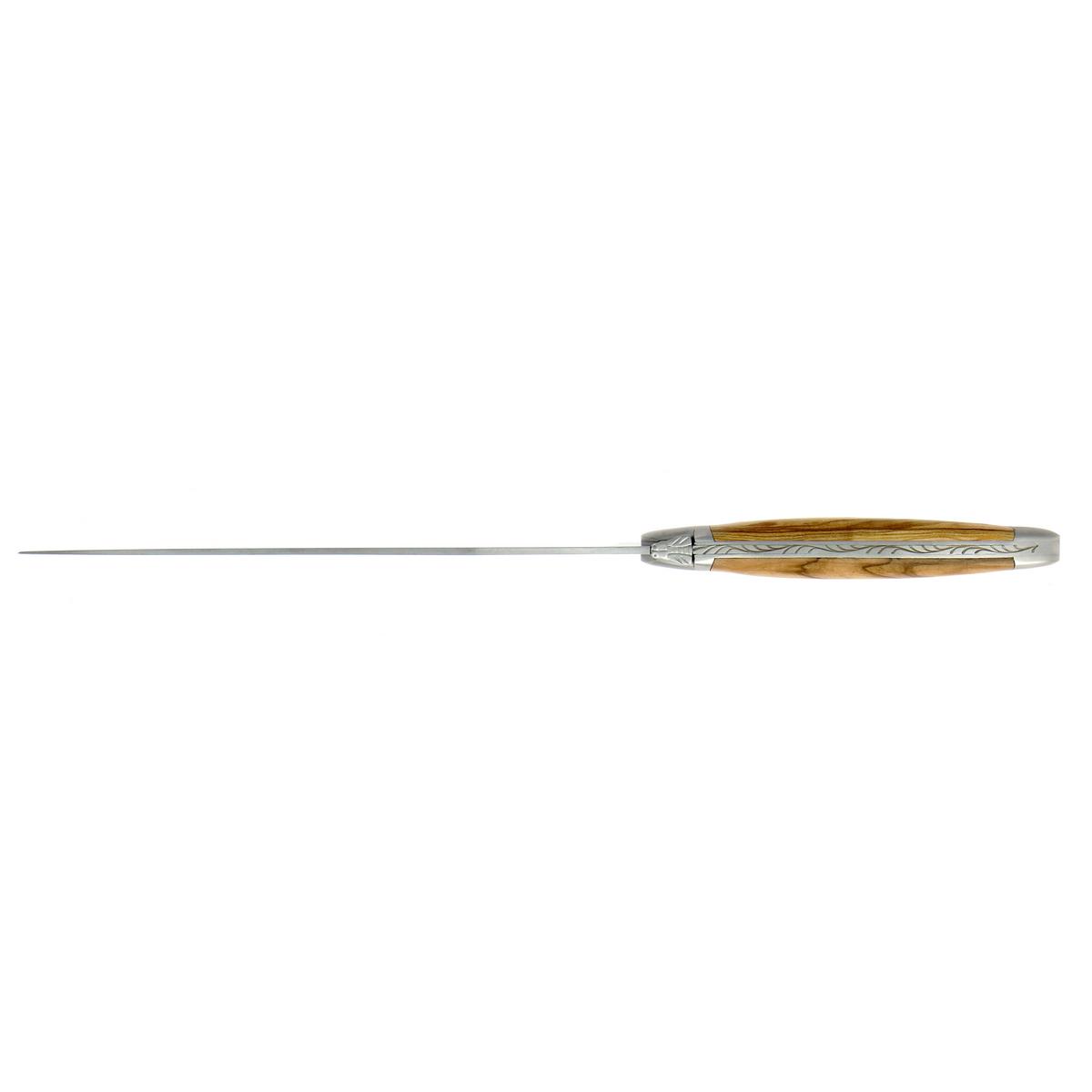 - Olive wood handle, stainless steel with satin finish, length of the blade: 17.5 cm