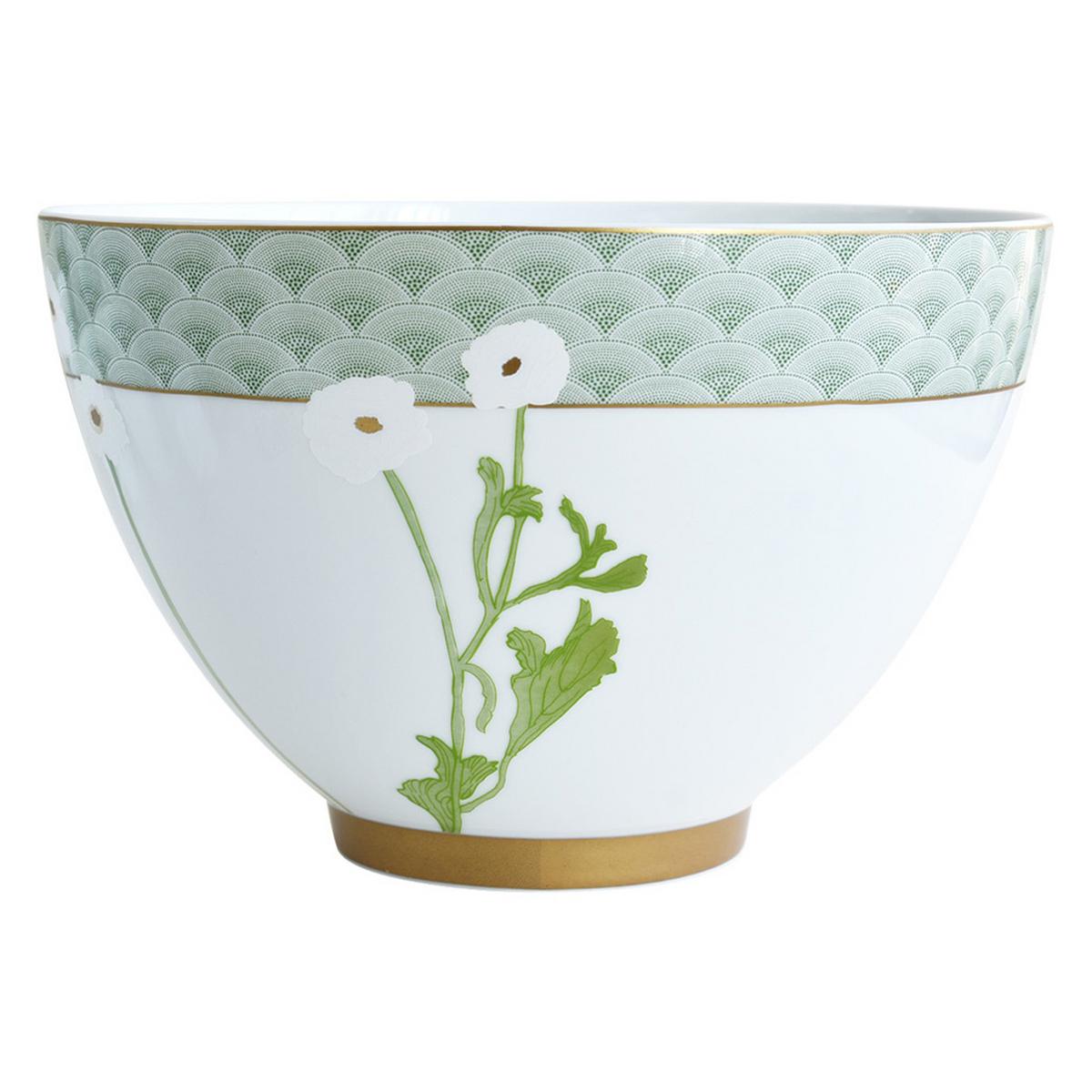 The "Praiana" dinnerware by Bernardaud is a homage to Art Nouveau, which is currently being rediscovered and interpreted by many interior designers. The fine Limoges porcelain shows an Art Nouveau decor in delicate lime green combined with a contemporary, naturalistic flower motif in fresh green and bright white. The golden borders lend "Praiana" a luxurious appearance.