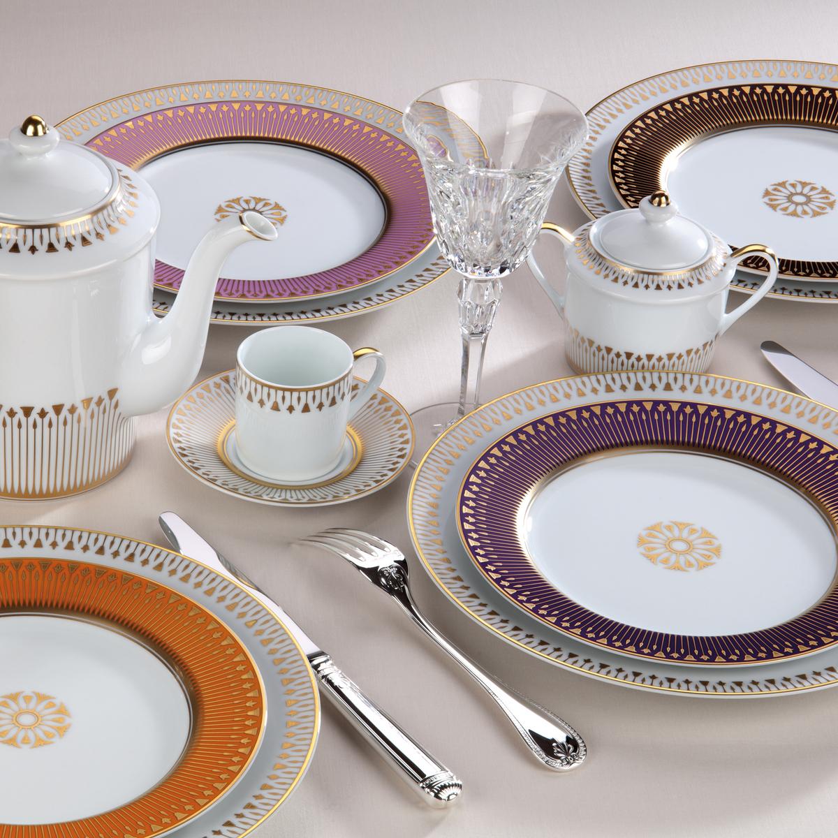 Pieces with gold, silver, or platinum decoration: not suitable for the microwave, as Bernardaud uses a high percentage of precious metals in these designs.