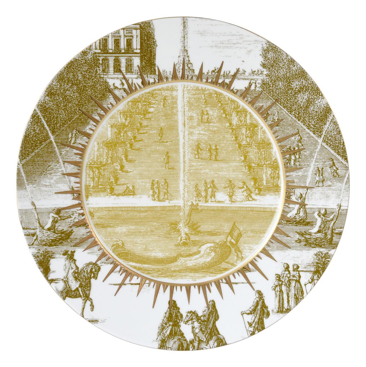 The "Versailles Enchanté" dinnerware represents the gardens, seen from the castle, and the shows of these festivities. Each plate is decorated with a different motif. This makes it especially exciting to combine the different plate sizes and designs with each other.