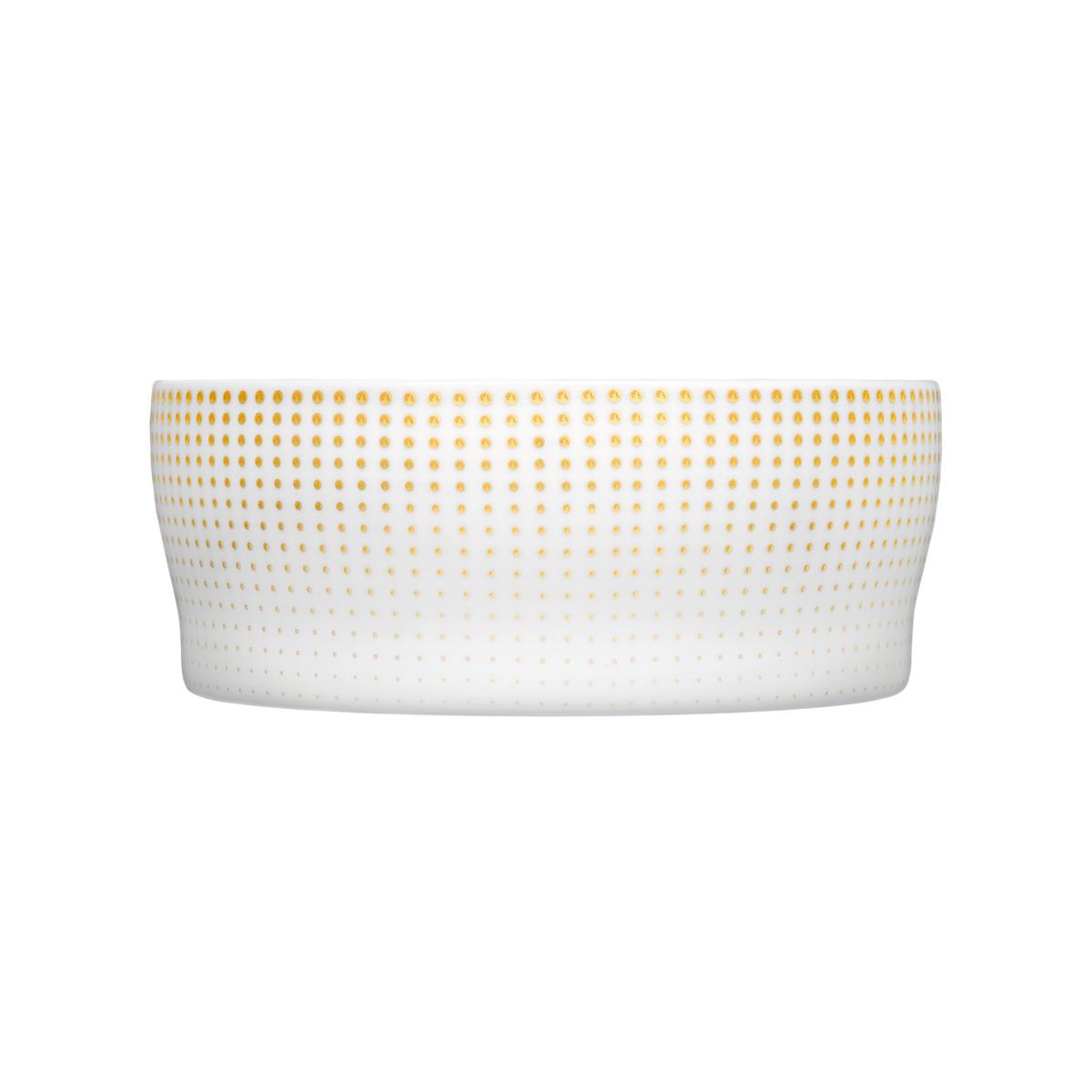 The "Clair de Lune" pattern splendidly builds on what provided the Korean ceramic master Kap-Sun Hwang with the inspiration for the basic "Auréole" form, namely the sun and moon. The shapes reflect classic to Asian styles. On the seemingly featherlight porcelain, the different phases of the moon are reflected. The centre of the plate is slightly raised – which also slightly raises the food served on them, thus clearly making it the focal point.