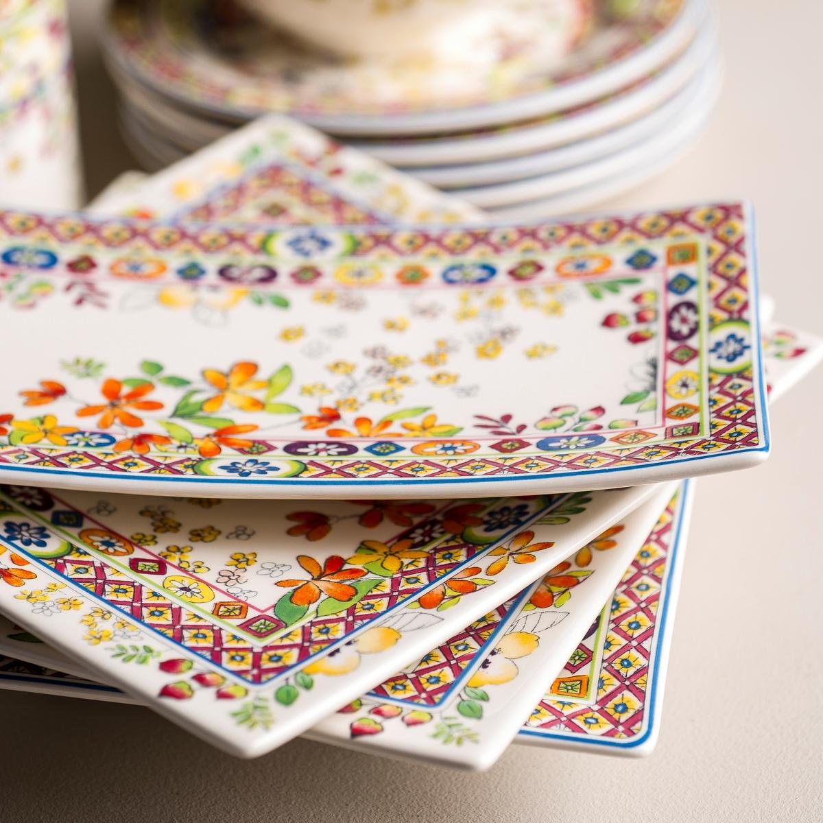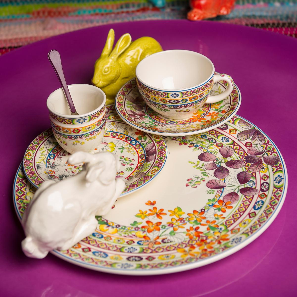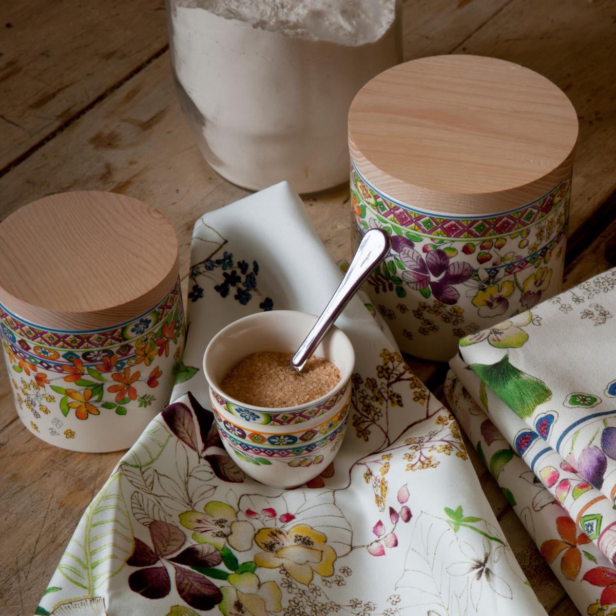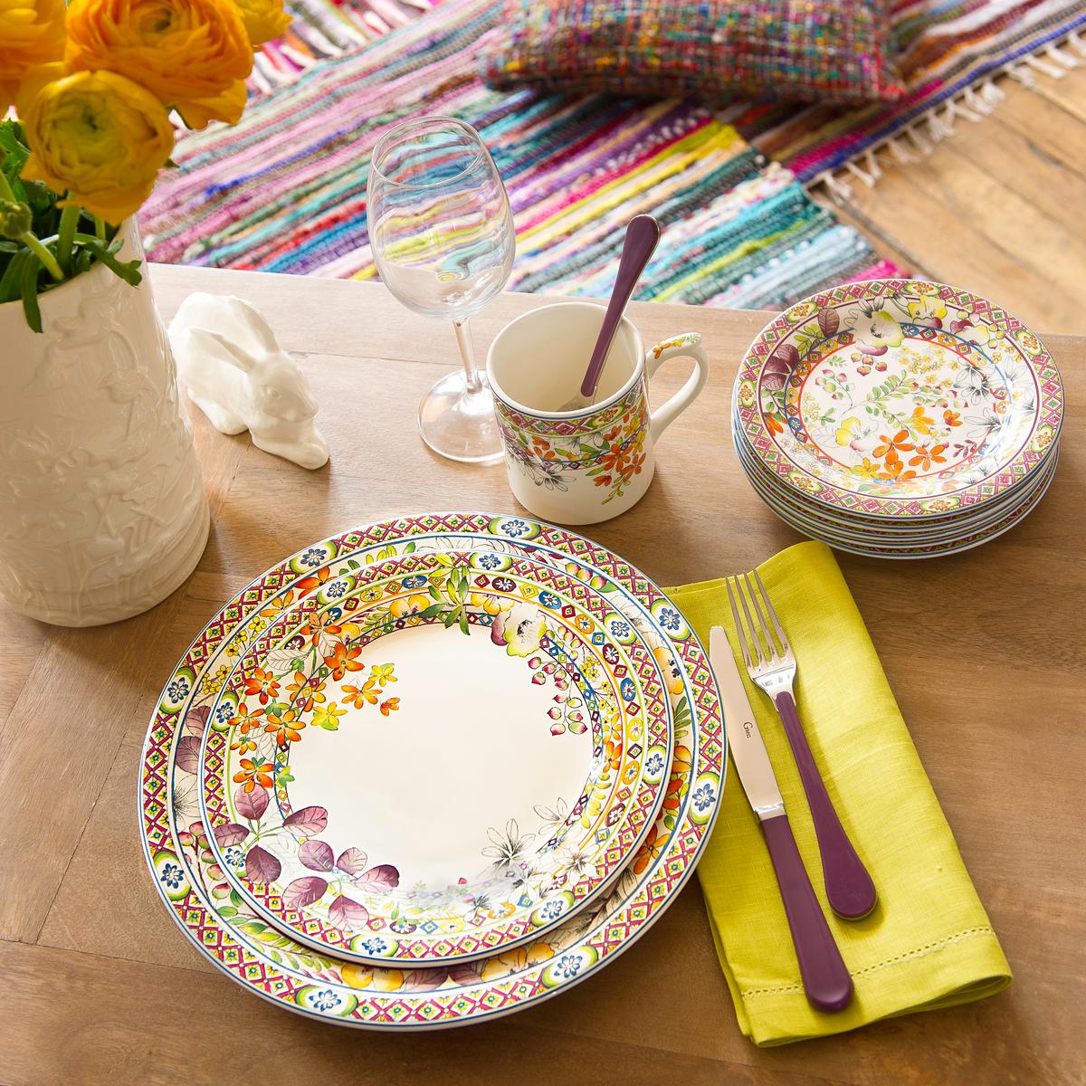 The "Bagatelle" dinner service from Gien is particularly good for garden parties. In minimalistic furnished rooms, it serves as a cheerful highlight in which one can always discover something new.