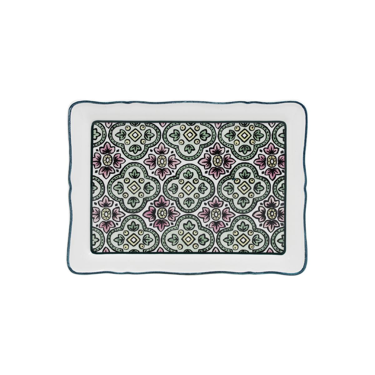 Gien's "Dominoté" dinnerware is the result of a collaboration between Gien and the small wallpaper manufacturer "Antoinette Poisson" to create a rich collection of shapes and patterns. "Antoinette Poisson" produces handprinted and handpainted wallpaper using the traditional "Dominoterie" printing technique dating from the eighteen century.