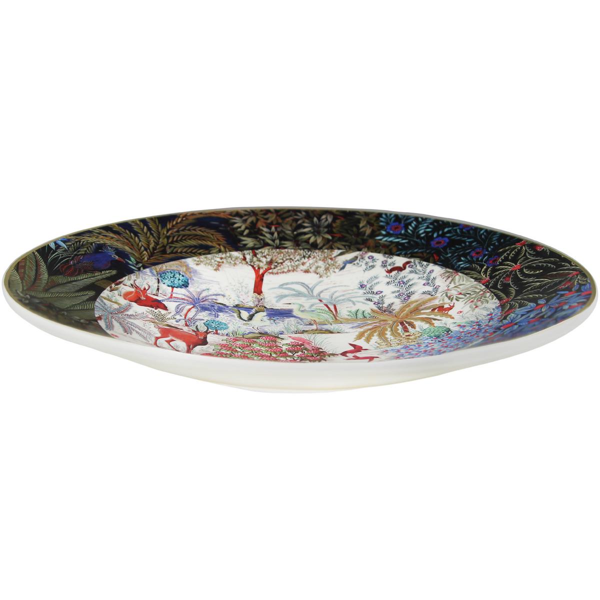 "Le Jardin du Palais" by Gien takes its beholder on a magical journey through a brightly coloured world of plants and animals. Wild animals blend into a lush landscape with rich, iridescent colours. The illustrations are by Pierre Frey. The Pierre Frey brand was founded in Paris in 1935 and produces high-quality fabrics and wallpapers. Matching the "Le Jardin du Palais" tableware by Gien, there is also a wallpaper collection of the same name by Pierre Frey.