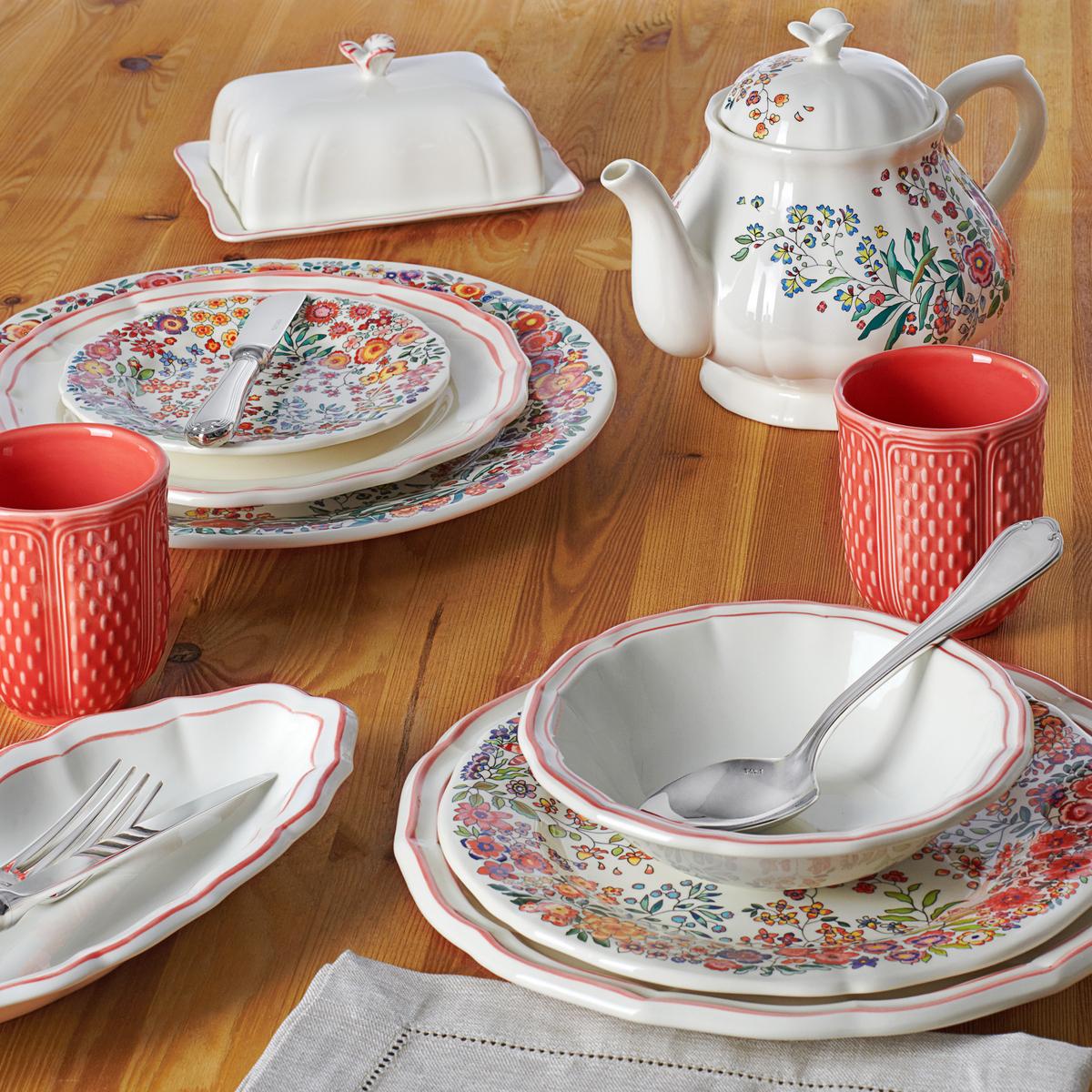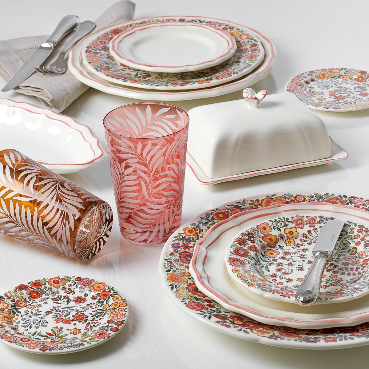 The Belgian illustrator Isabelle Barthel designed the summery "Poesie" dinnerware for Gien. Many successful collections have already been created in collaboration with the artist. For her designs, the illustrator often draws inspiration from nature. "Poesie" is nature’s promise of constant renewal. Each flower depicted, each stem and each leaf, is different, denoting the bountiful wealth of nature, echoing the detail and care that goes into the work of the Gien manufactory. For teatime, coffee time or lunch, this floral pattern will suit the occasion. Its print in vivid orange, pink and blue seems to radiate good humor.