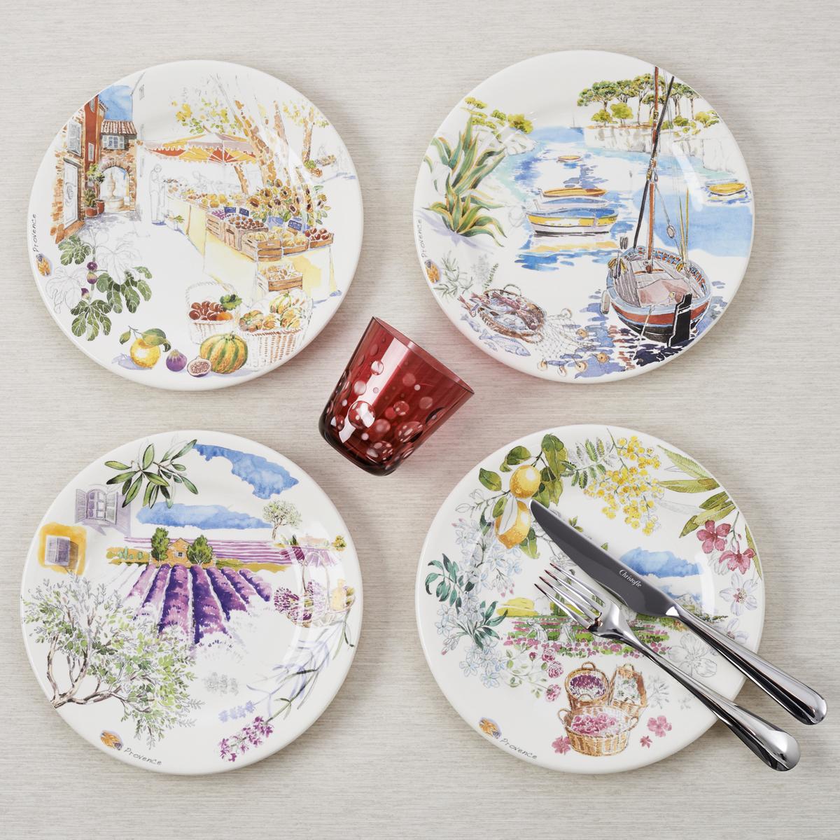 Each of the plates in the four-piece "Provence" dessert set bears a different motif. Thus, at the end of the dinner, enthusiasts are offered an additional visual treat by the plates of the people sitting next to them.
