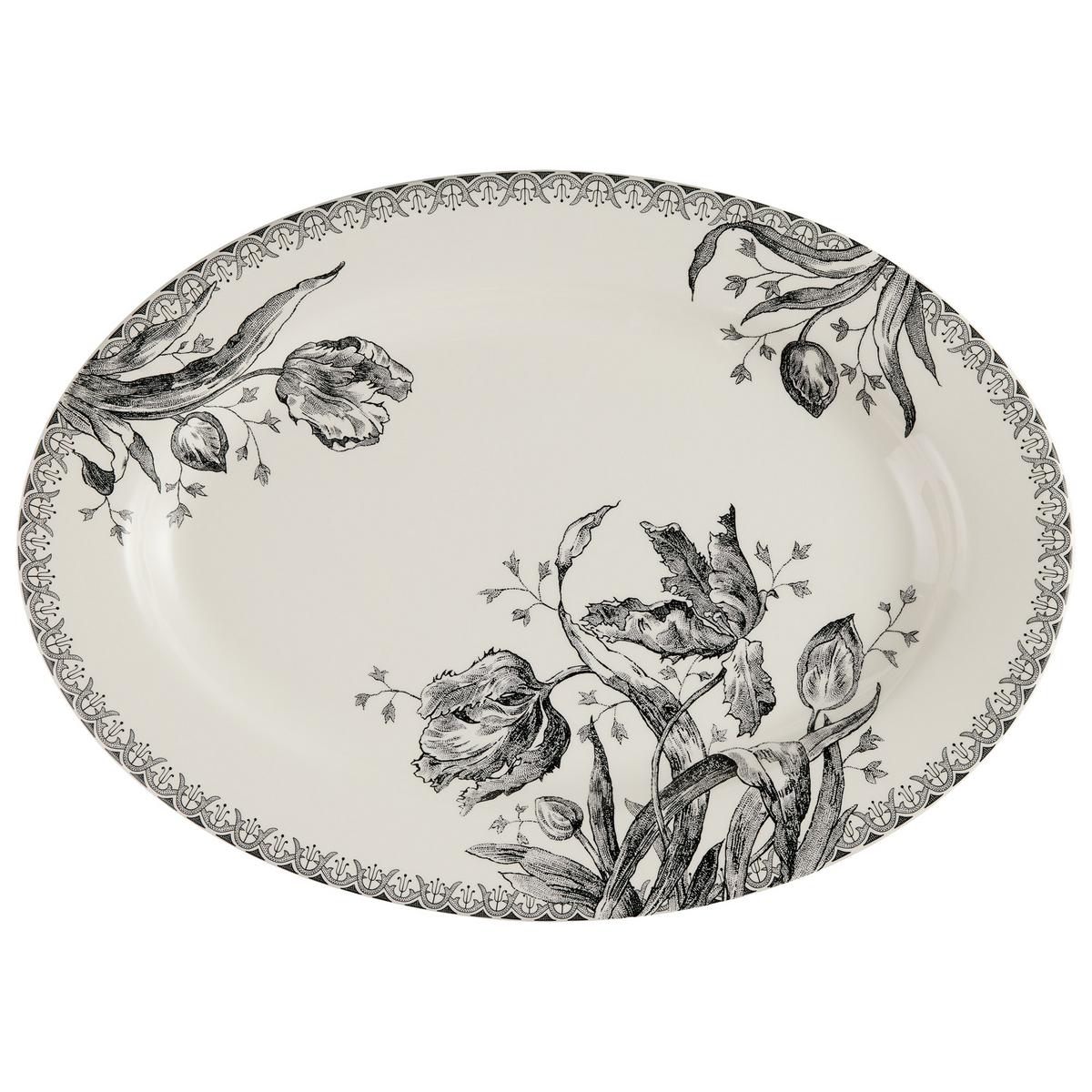 Precious black tulips lend an elegant and exotic touch to the light faience ceramics of Gien. "Tulipes Noires" means translated black tulips. Black tulips are also known as queens of the night. Over the centuries, this special flower has captivated many people. "Tulipes Noires" is a new edition of Gien's 19th century collection. The French manufactory has tried to translate the traditional tulip motif, which was already famous at the court of King Louis XIV, into a modern way.