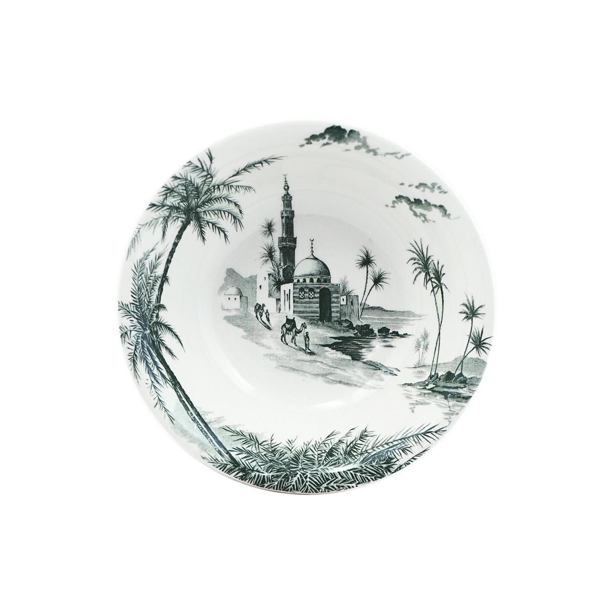 "Vues d'Orient" by Gien invites you to an exotic and nostalgic journey to a faraway place in the east. The design "Vues d'Orient" was first produced in the 1870s and received a gold medal and an honorary diploma at the 1876 World Exhibition in Philadelphia. It reflects the fashionable Orientalism trend of the time. Gien now presents updated variations of the theme "Vues d'Orient" in shades of green.