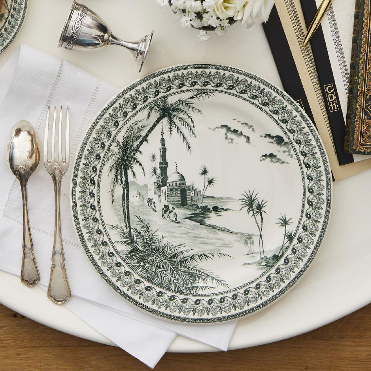 "Vues d'Orient" by Gien invites you to an exotic and nostalgic journey to a faraway place in the east. The design "Vues d'Orient" was first produced in the 1870s and received a gold medal and an honorary diploma at the 1876 World Exhibition in Philadelphia. It reflects the fashionable Orientalism trend of the time. Gien now presents updated variations of the theme "Vues d'Orient" in shades of green.