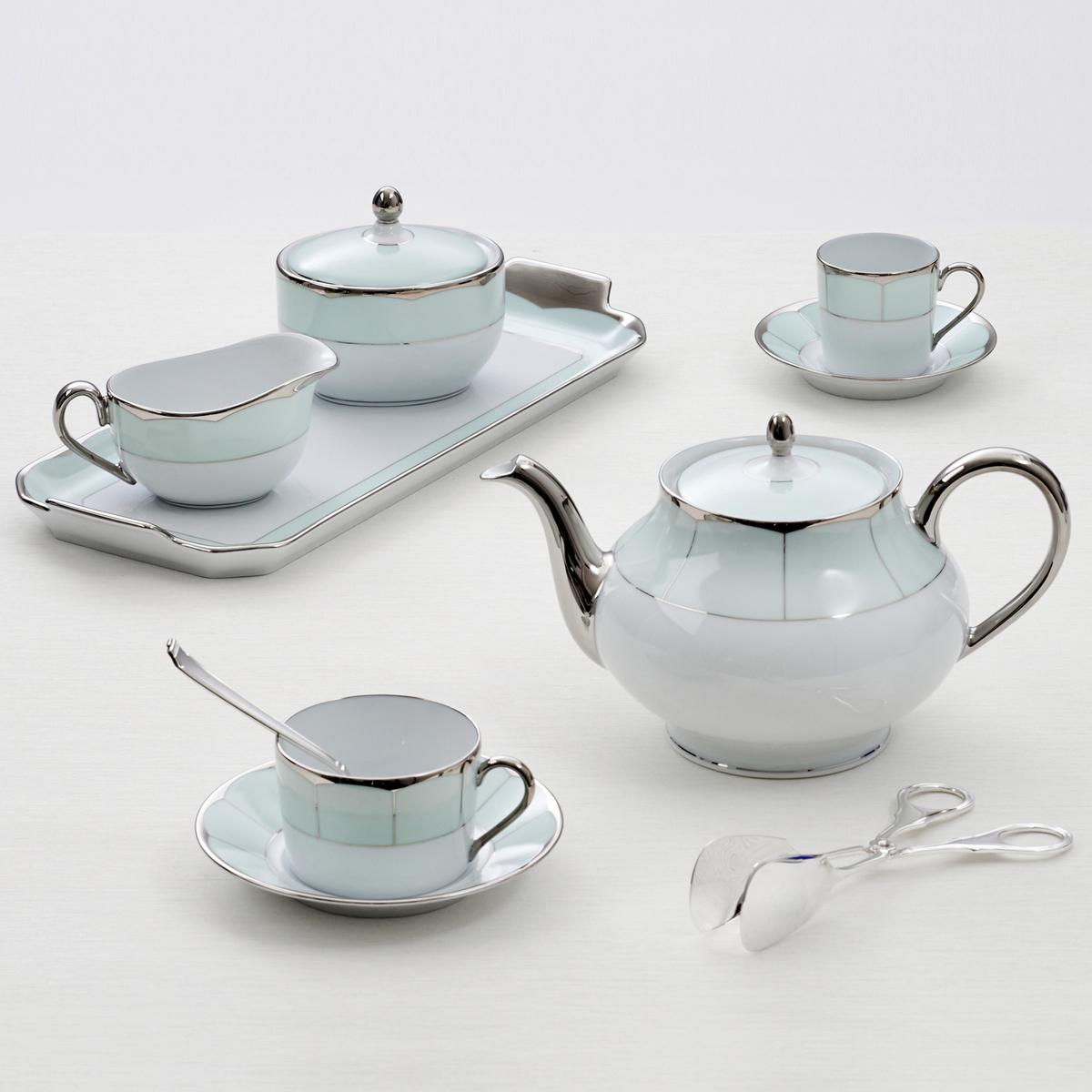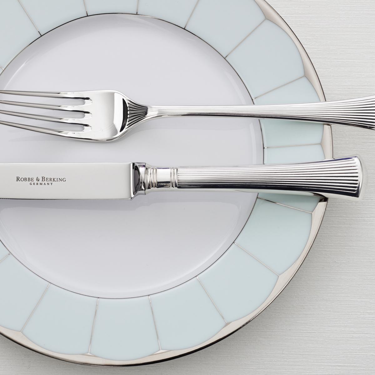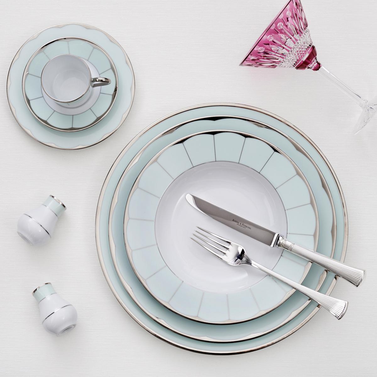 The name of the dinner service "Illusion Menthe" from Haviland refers to its powdery peppermint hue, and this delicate impression is underlined by the wafer-thin Limoges porcelain. The platinum borders frame each piece. It is a perfect choice for romantic occasions.
