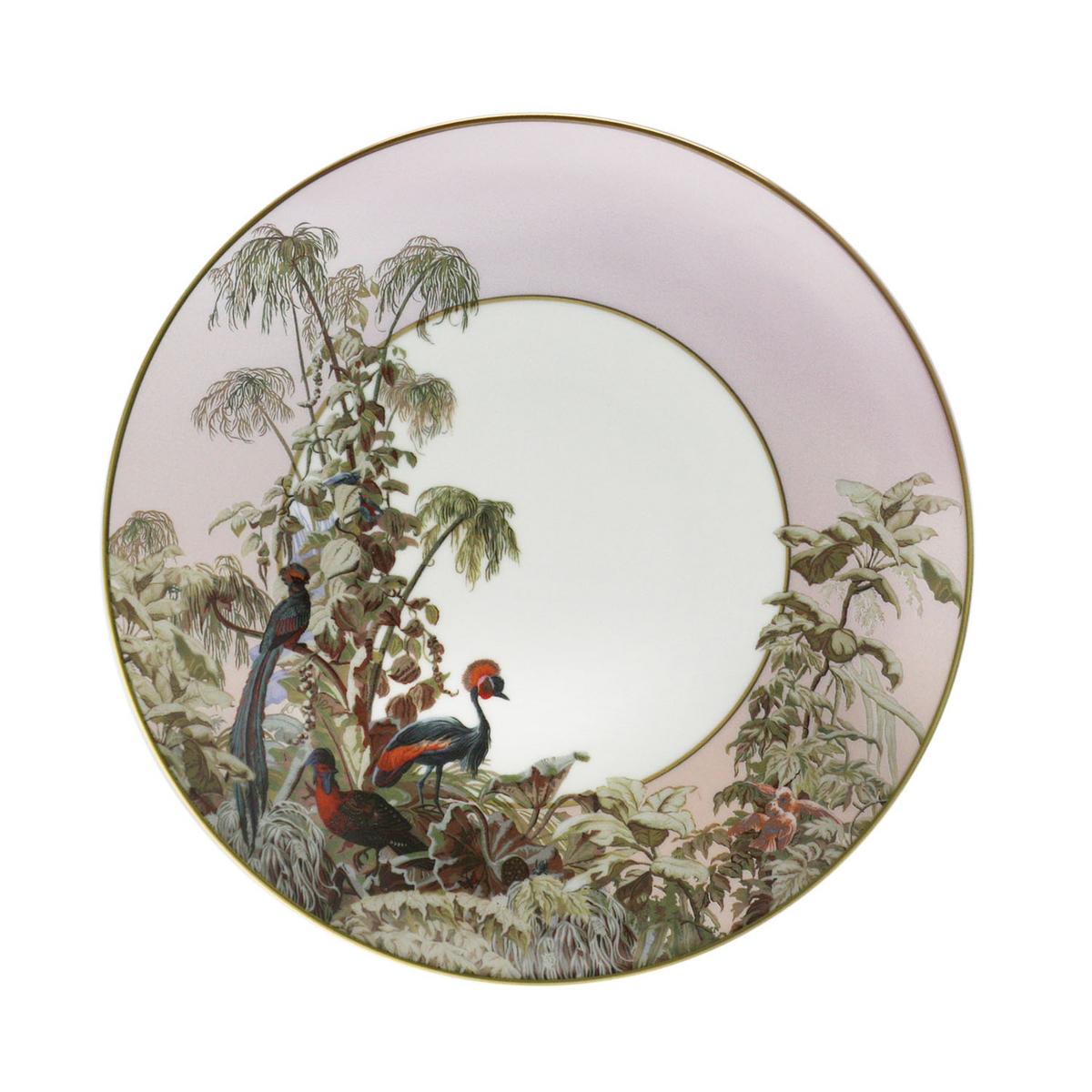 "Flora und Fauna. Auf dem Dessertteller aus der Kollektion Le Brésil tummeln sich exotische Tiere. Das Tafelservice aus Limoges-Porzellan entstand im Jahr 2013 durch die Zusammenarbeit von der Porzellanmanufaktur Haviland mit der Manufaktur Zuber."