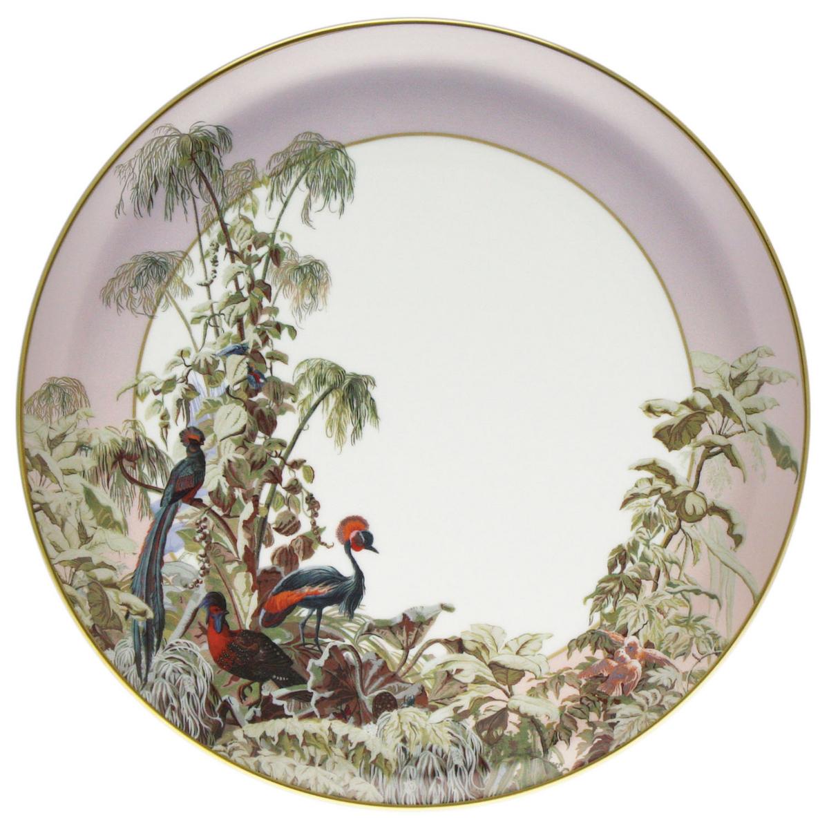 "Flora und Fauna. Auf dem Dessertteller aus der Kollektion Le Brésil tummeln sich exotische Tiere. Das Tafelservice aus Limoges-Porzellan entstand im Jahr 2013 durch die Zusammenarbeit von der Porzellanmanufaktur Haviland mit der Manufaktur Zuber."