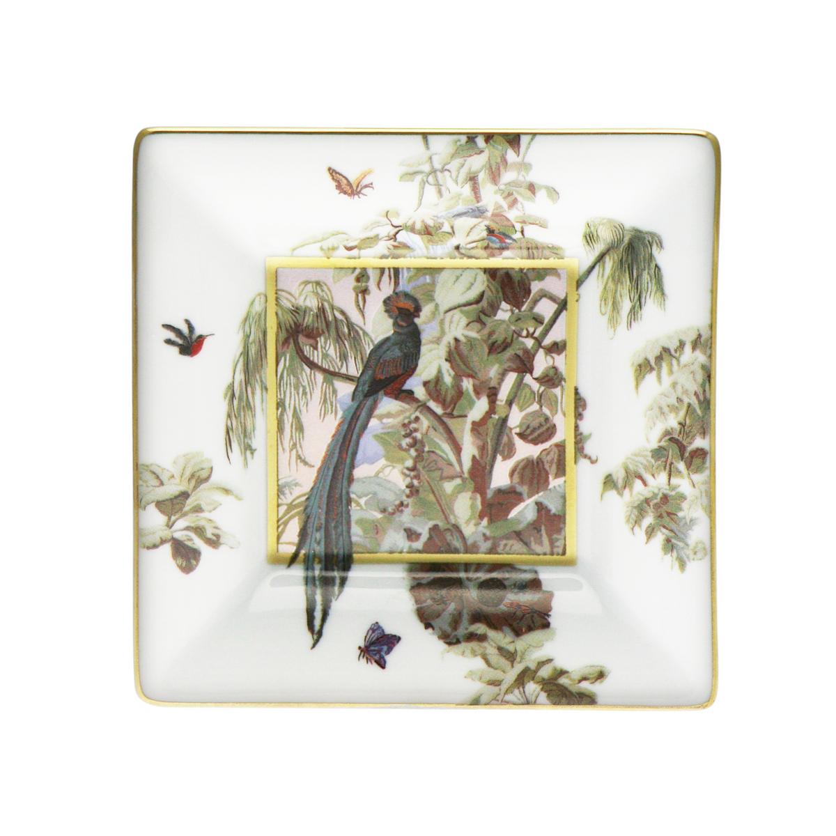 "Flora und Fauna. Auf dem Dessertteller aus der Kollektion Le Brésil tummeln sich exotische Tiere. Das Tafelservice aus Limoges-Porzellan entstand im Jahr 2013 durch die Zusammenarbeit von der Porzellanmanufaktur Haviland mit der Manufaktur Zuber."