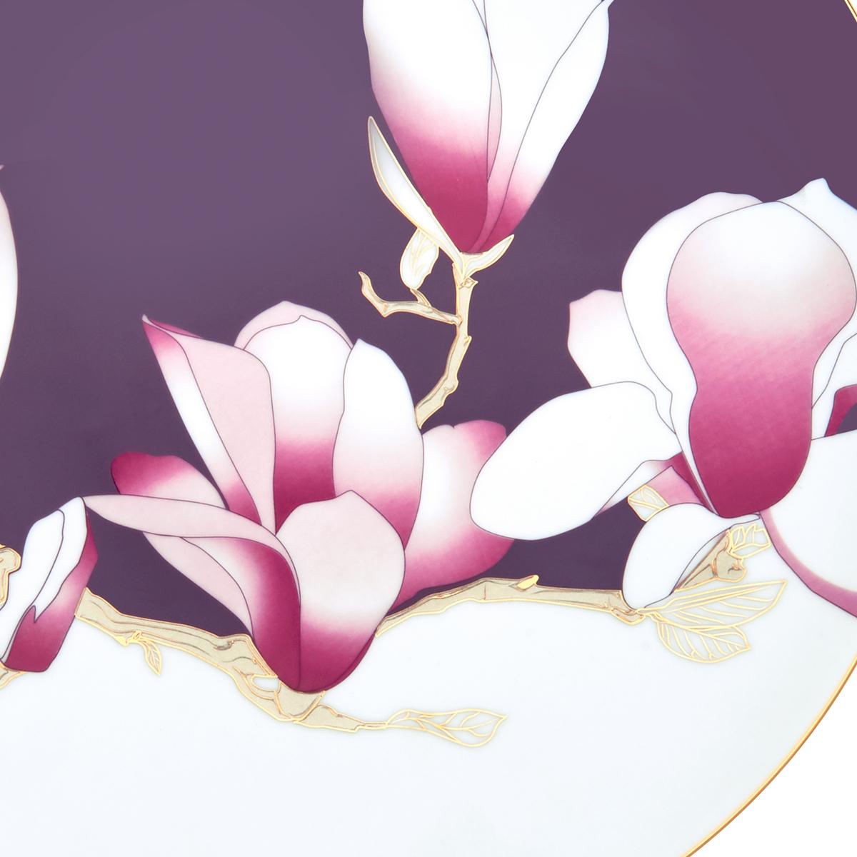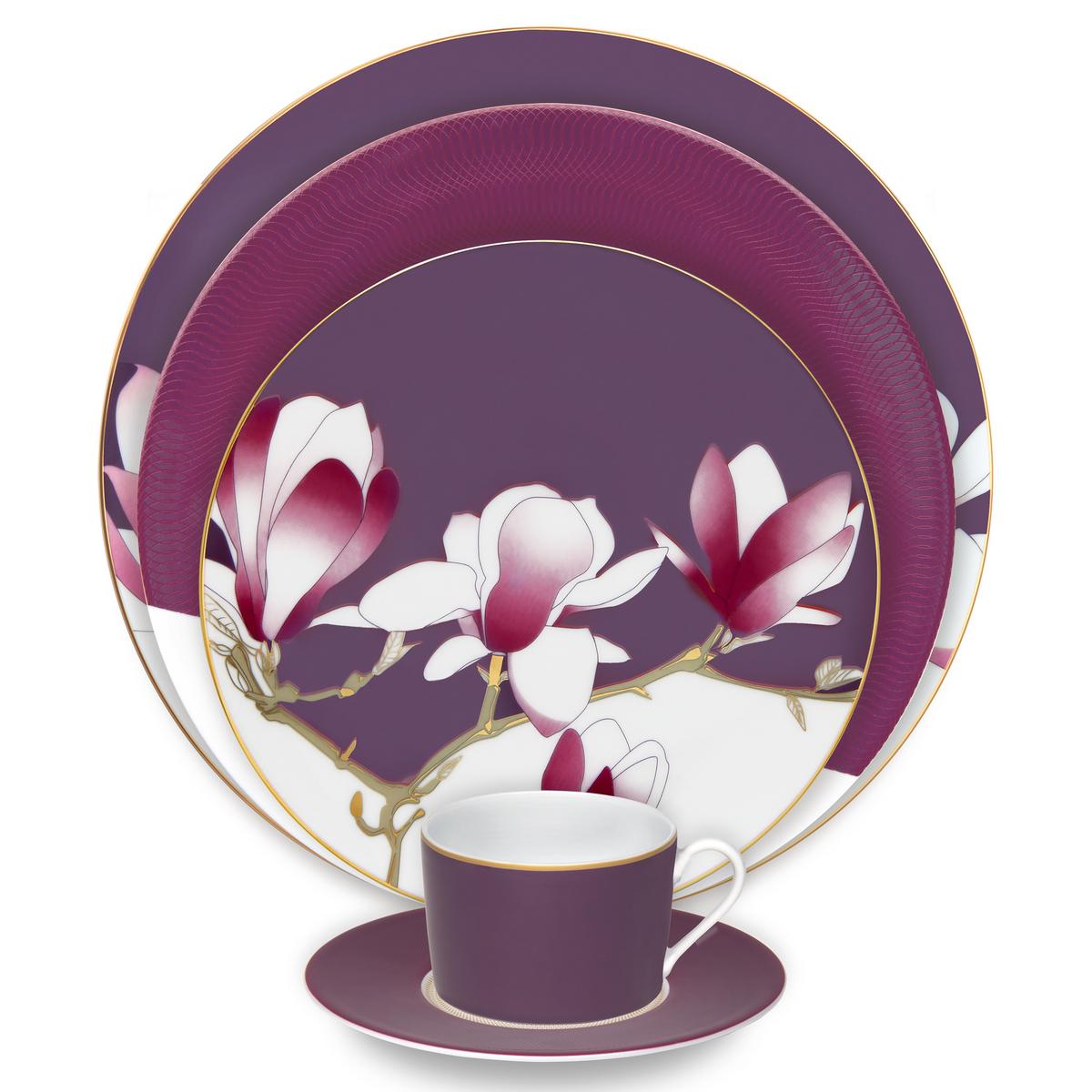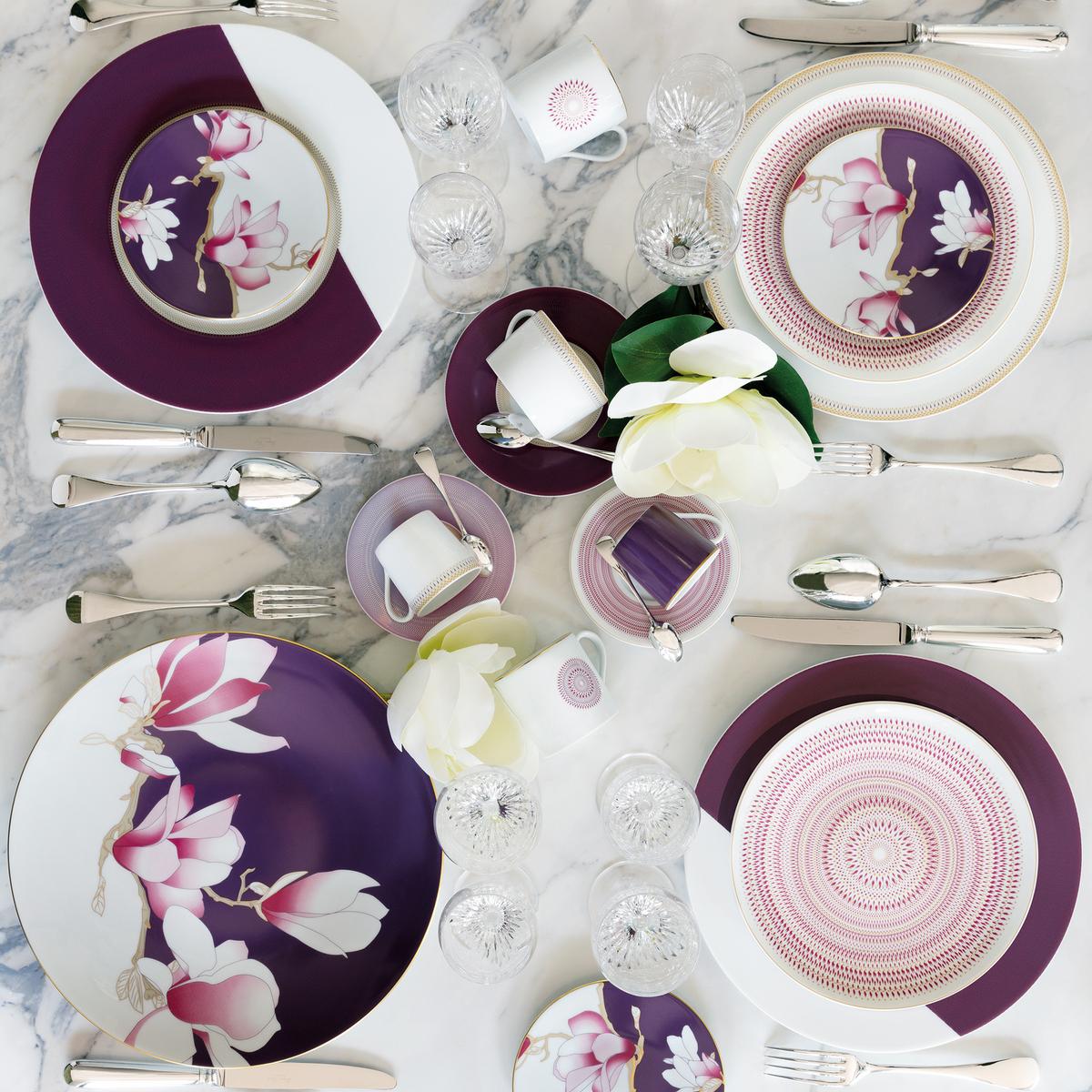 The "Magnolia" dinnerware by Haviland captures a magical moment in nature: the magnolia blossom. The magic of the opening, beautiful blossom of the magnolia tree lasts only a few days in nature. On the "Magnolia" dinner sevice by Haviland, the white-pink plants bloom forever.