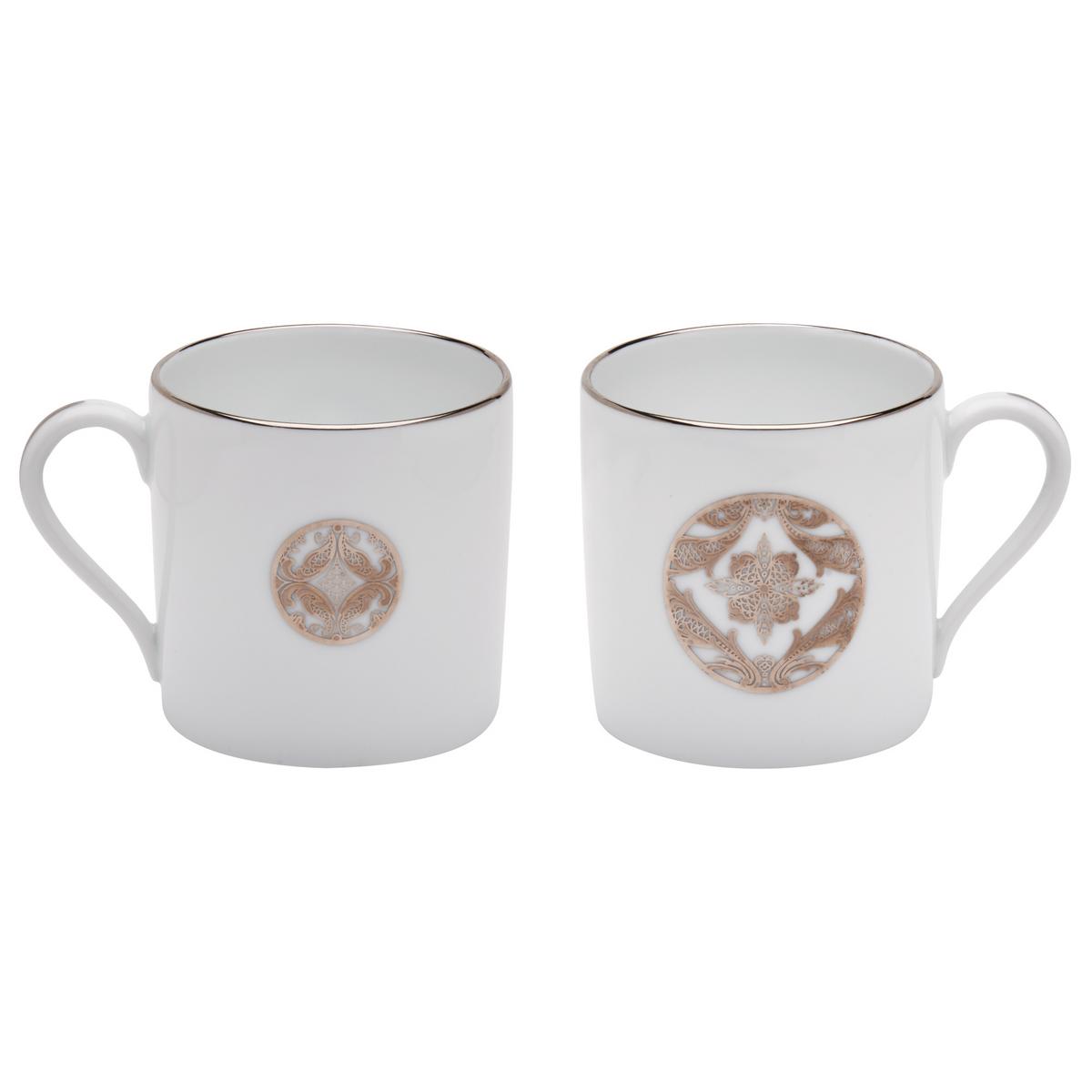 Haviland created the perfect cups to crown a delicious meal with an espresso or coffee with these mini mugs made of Limoges porcelain. Each cup is decorated on the front and back with two different circular decors. These designs are framed in gold or platinum and show enlargements of famous Haviland porcelain lines.