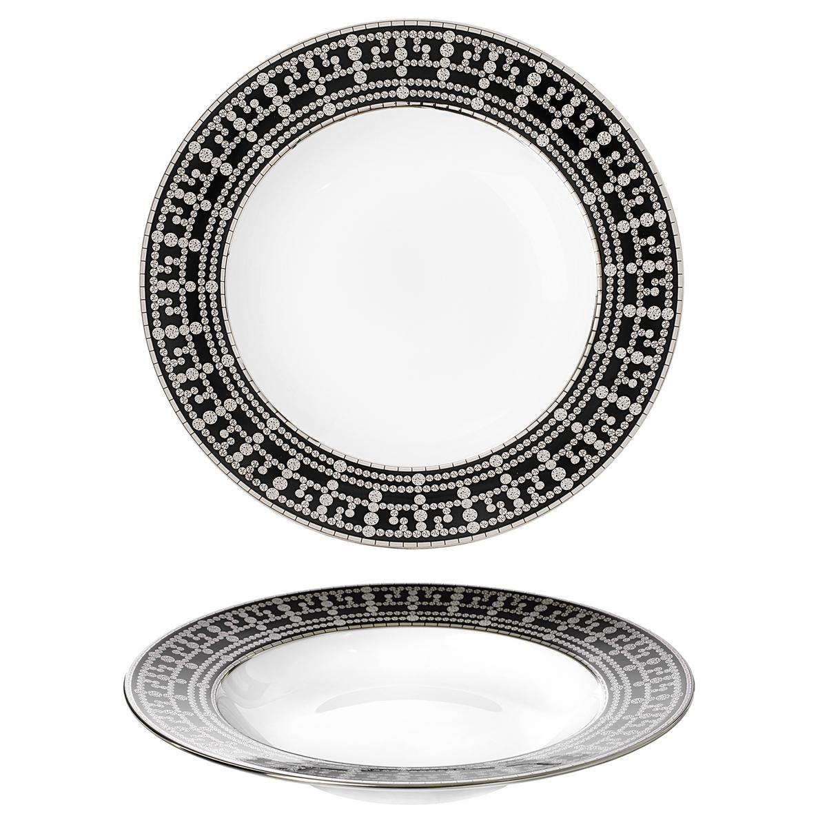The "Tiara" dinnerware from Haviland displays a wonderful pattern, reminiscent of a diamond-studded coronet. A tiara, a jewelled ornamental band worn by women on formal social occasions, is often adorned with precious stones and diamonds. The interplay of black and platinum is very refined. Each piece of the "Tiara" dinner service is manufactured in the renowned French porcelain factory Haviland.