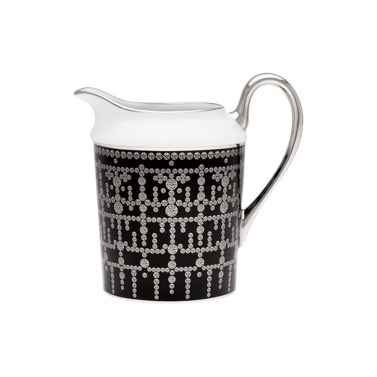 The "Tiara" dinnerware from Haviland displays a wonderful pattern, reminiscent of a diamond-studded coronet. A tiara, a jewelled ornamental band worn by women on formal social occasions, is often adorned with precious stones and diamonds. The interplay of black and platinum is very refined. Each piece of the "Tiara" dinner service is manufactured in the renowned French porcelain factory Haviland.