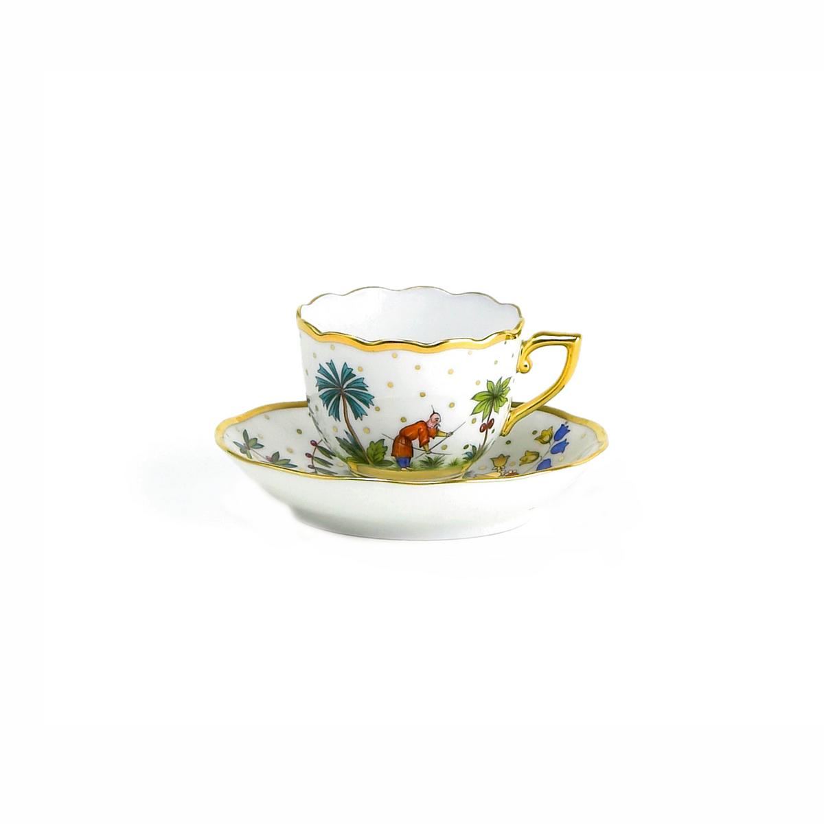 Once the purveyor to the emperor's court, this "Forains d'Orient" porcelain pays special homage to the European art tradition of Chinoiserie. Early porcelain artists once used to focus on Chinese motifs. China was after all the country of origin of the "white gold". The "Forains d’Orient" dinner service is based on nineteenth-century Herend motifs inspired by this Chinese art. Herend has refined the pattern and produced a dinner service to match contemporary tastes.