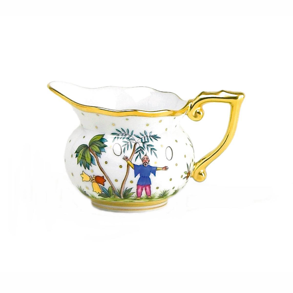 Once the purveyor to the emperor's court, this "Forains d'Orient" porcelain pays special homage to the European art tradition of Chinoiserie. Early porcelain artists once used to focus on Chinese motifs. China was after all the country of origin of the "white gold". The "Forains d’Orient" dinner service is based on nineteenth-century Herend motifs inspired by this Chinese art. Herend has refined the pattern and produced a dinner service to match contemporary tastes.