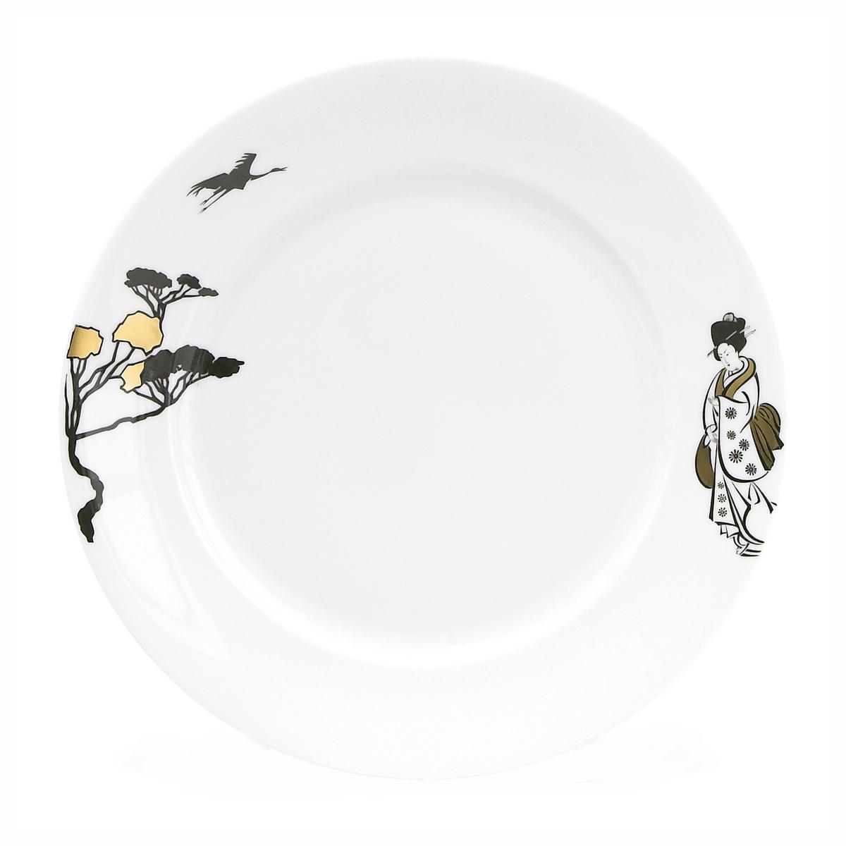 Japanese art meets Hungarian porcelain. Herend presents this delightful combination with aristocratic charm in its "Kimono" porcelain dinner service, the design is the result of intricate hand-painted calligraphy. The images were inspired by Japanese motifs, some of which the Herend porcelain artists have arranged asymmetrically. Samurais, women combing their hair, or couples in kimonos stand opposite the silhouette of a tree, while birds and dragons flutter around the rim.