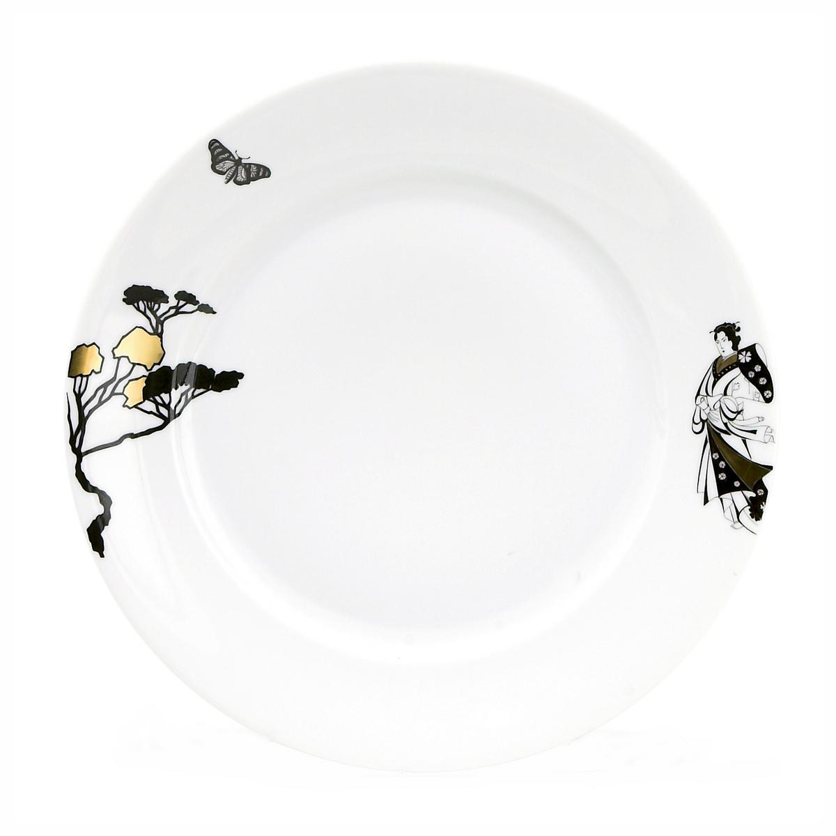 Japanese art meets Hungarian porcelain. Herend presents this delightful combination with aristocratic charm in its "Kimono" porcelain dinner service, the design is the result of intricate hand-painted calligraphy. The images were inspired by Japanese motifs, some of which the Herend porcelain artists have arranged asymmetrically. Samurais, women combing their hair, or couples in kimonos stand opposite the silhouette of a tree, while birds and dragons flutter around the rim.
